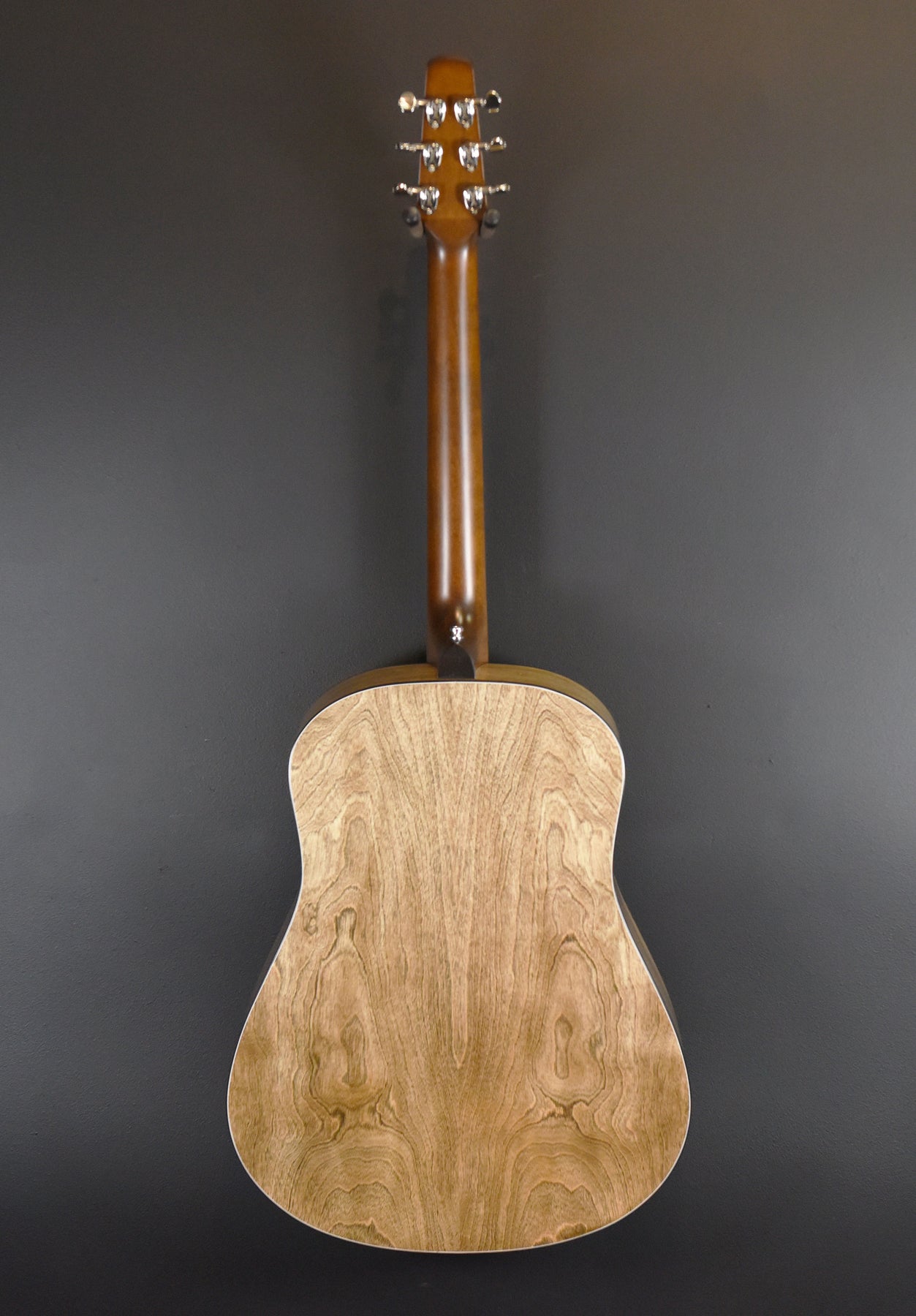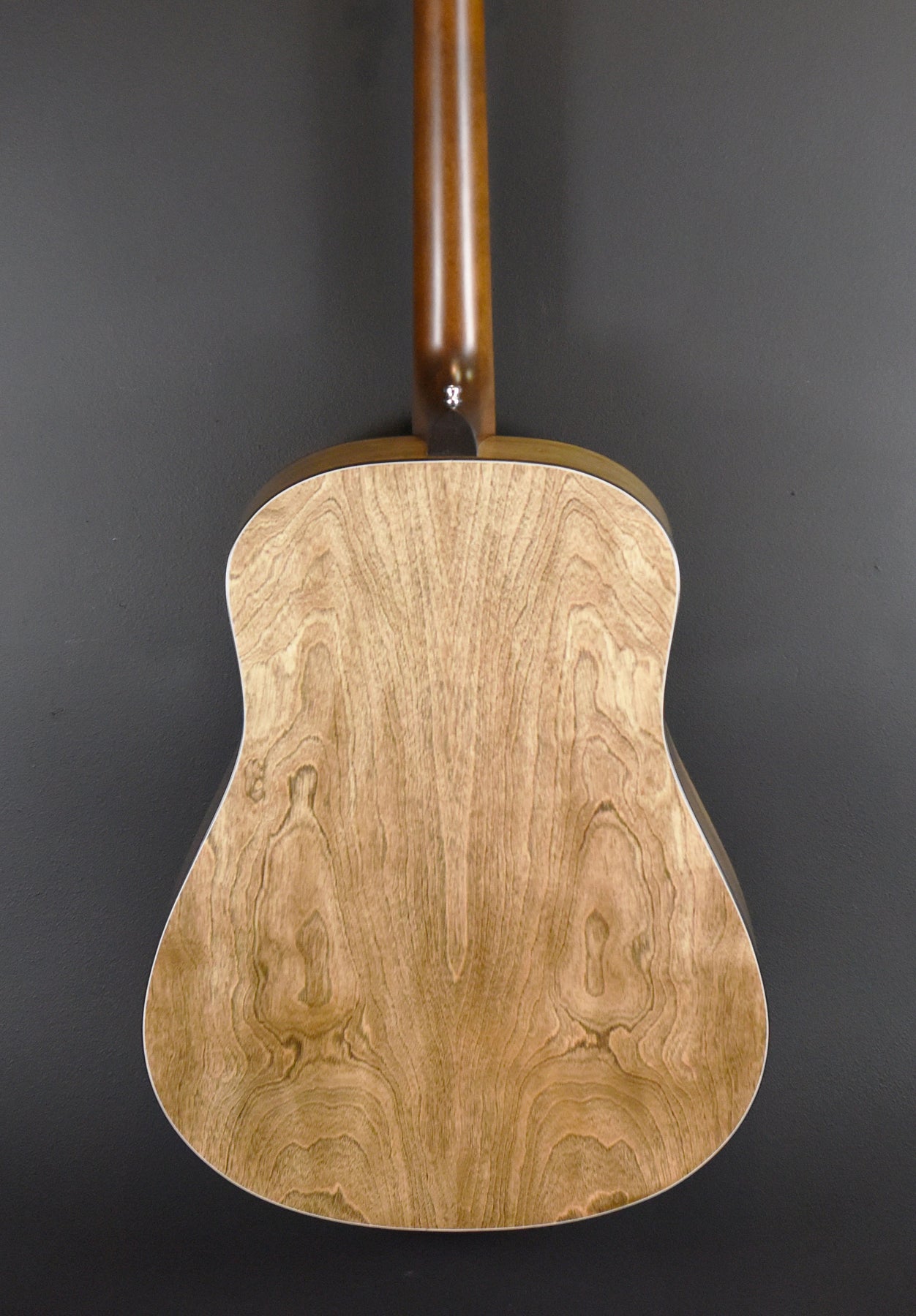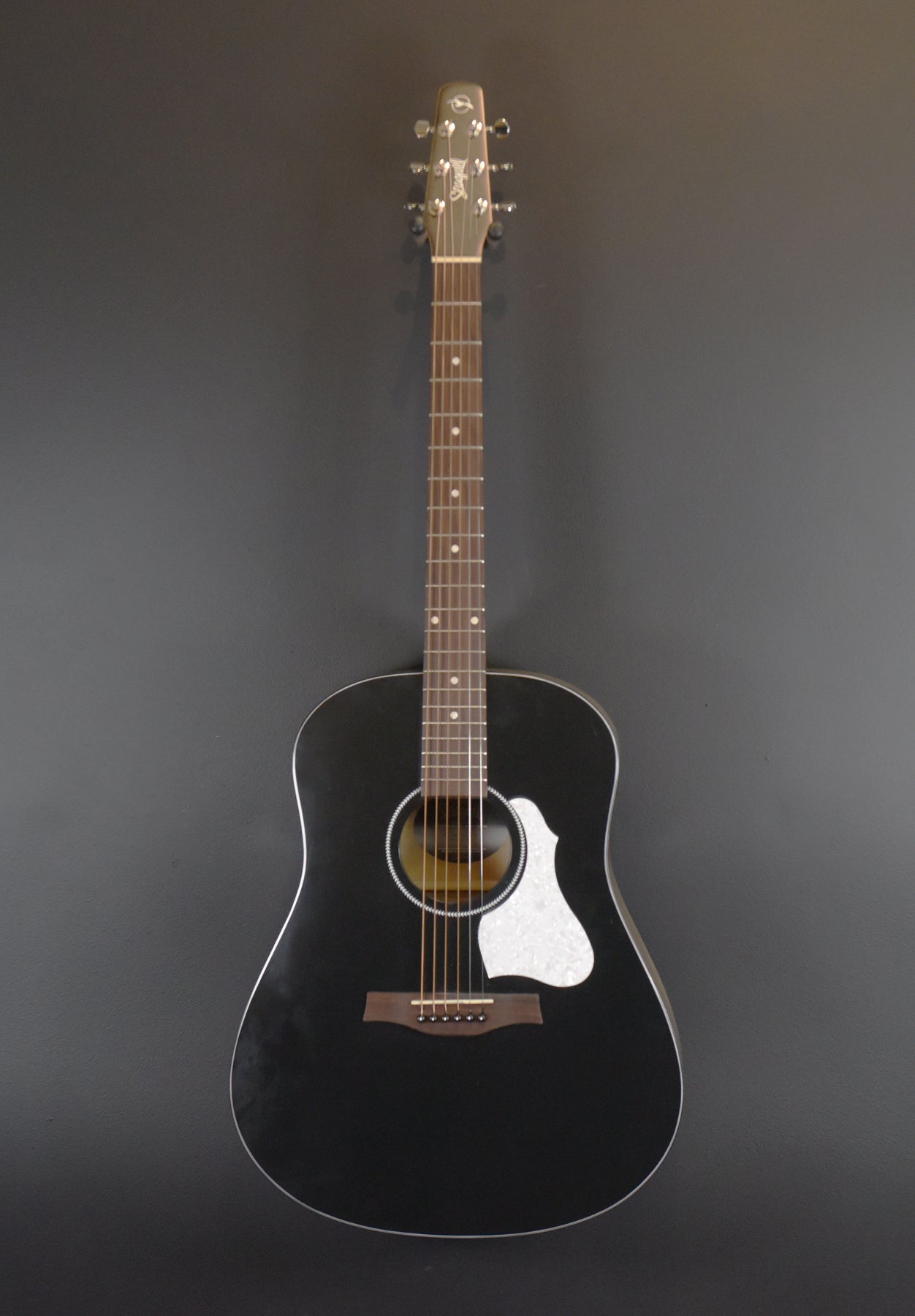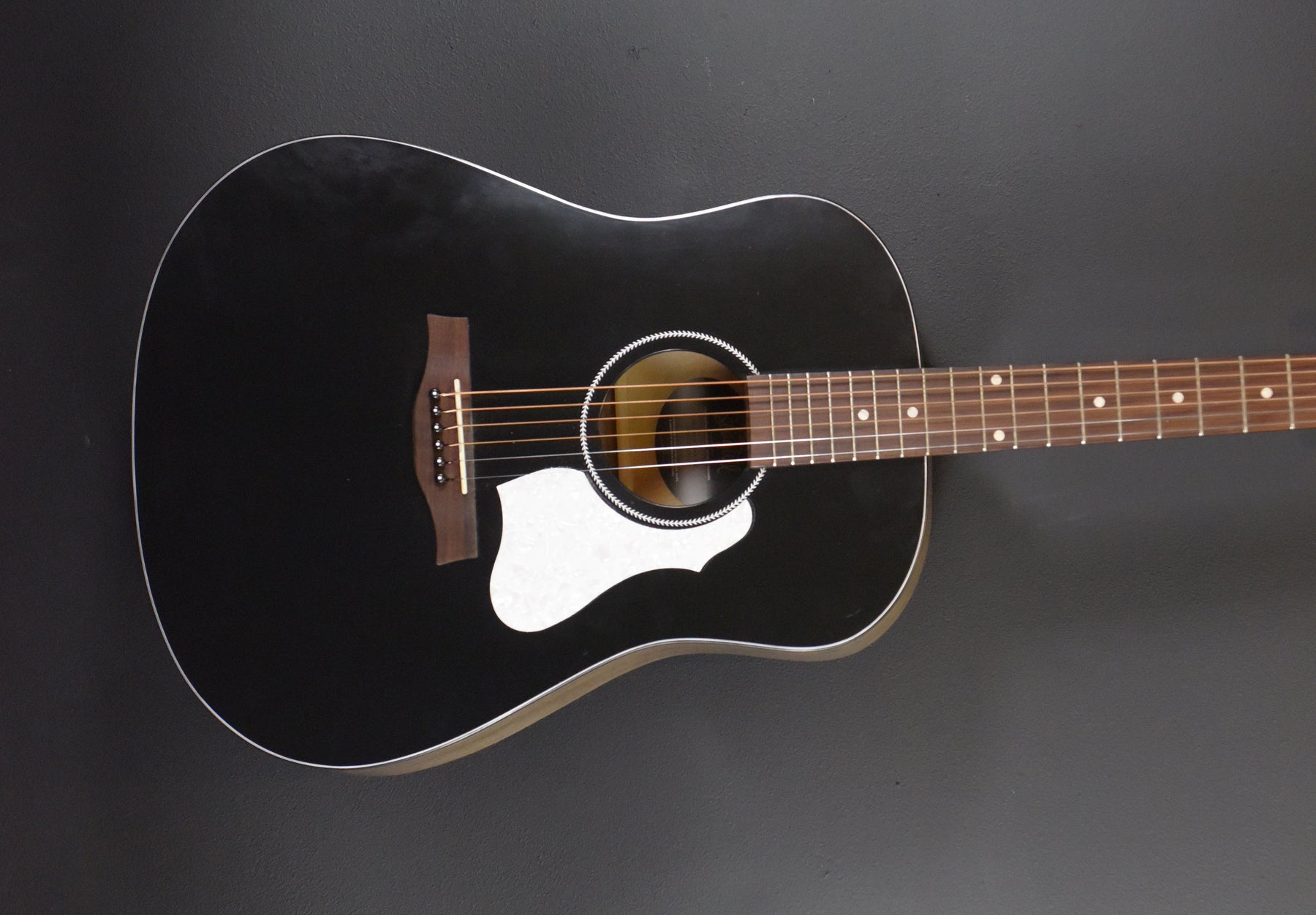 Satin Black, Dreadnought body shape, Semi-gloss finish, Solid Cedar top, Wild Cherry back and sides, Silver Leaf Maple neck with a 12" radius Rosewood fingerboard, 25.5" scale length, 1 3/4" nut width, With the factory Fishman Sonitone pickup system.