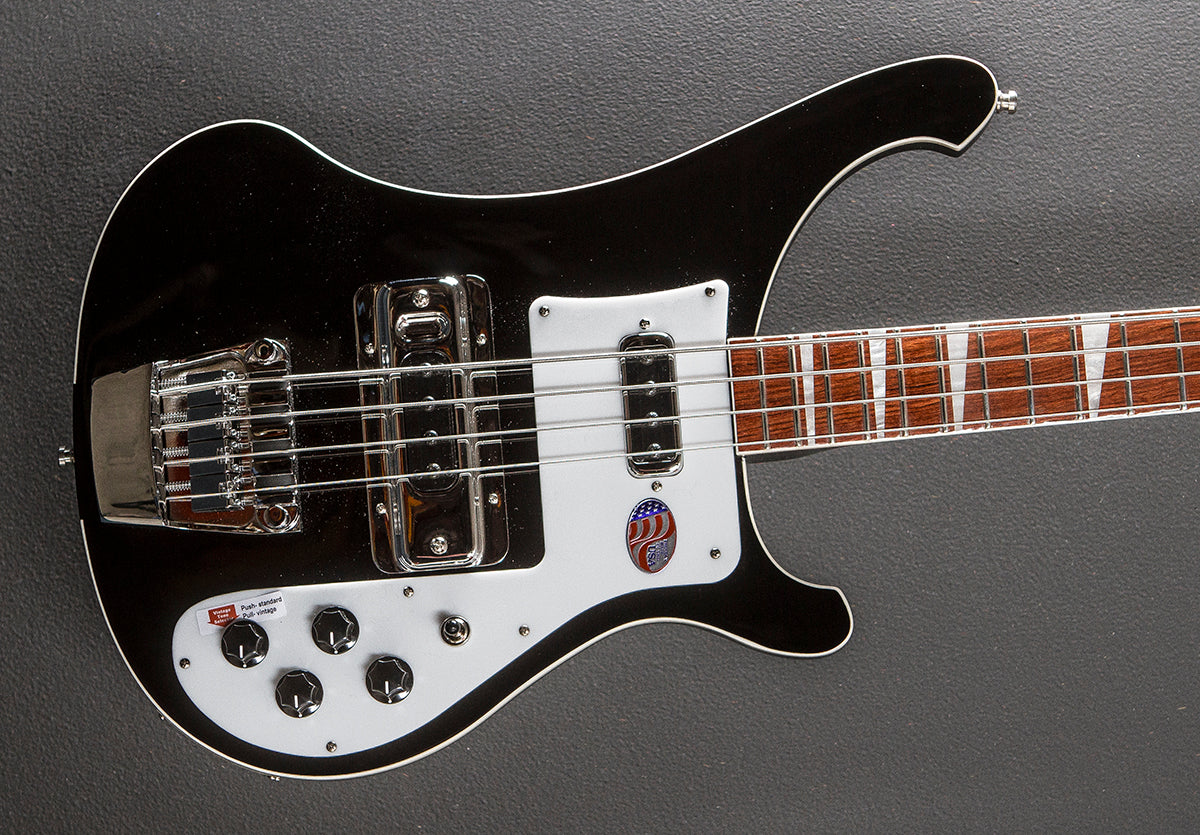 "The Classic Rickenbacker bass - famous for its ringing sustain, treble punch and solid underlying bass. A subtle strip of binding graces the elegantly curved body and the Rosewood fingerboard. Deluxe triangular inlays and stereo capability are standard features."