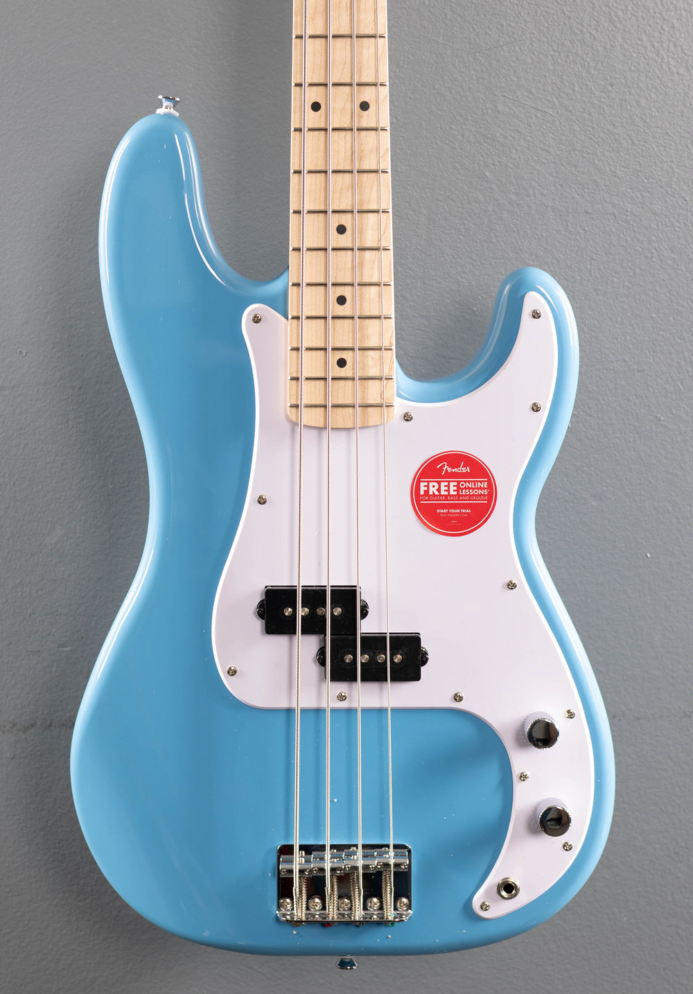 "The Squier Sonic™ Precision Bass® is ready to launch any musical adventure into warp speed, offering iconic Fender® style and inspiring tone for players at any stage. This P Bass® sports a slim and inviting “C”-shaped neck profile with a narrow 1.5" nut width and a thin, lightweight body for optimal playing comfort while a Squier® split single-coil pickup delivers punchy bass tone. Further details of this model include a 4-saddle hardtail bridge for precise intonation adjustment, open-gear tuning machines for smooth, accurate tuning and durable chrome-plated hardware that is sure to catch the spotlight."