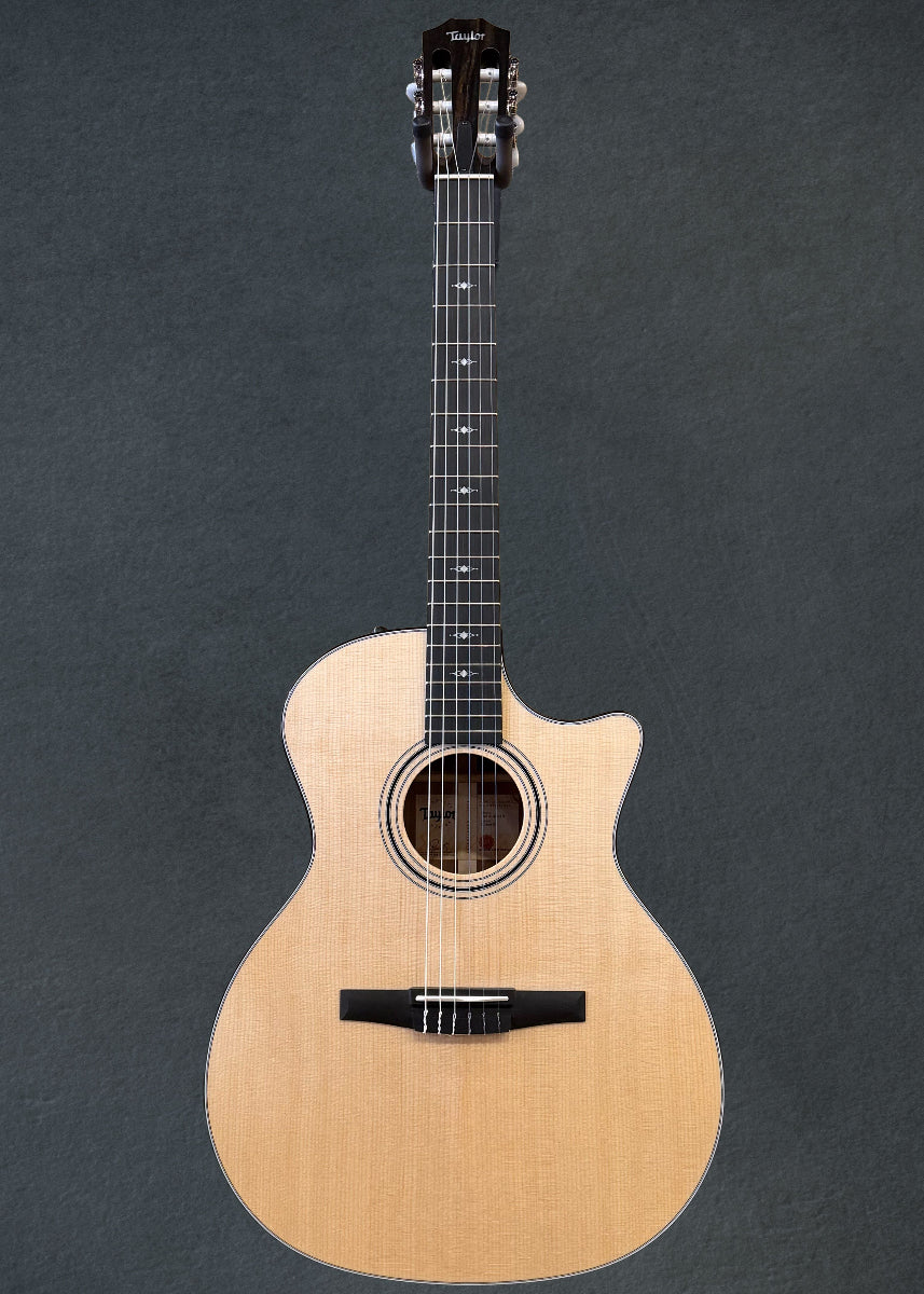 "Players looking for a new sound to add to their acoustic toolkit will appreciate the snappy, classical-inspired tone of the 314ce-N. Solid sapele back and sides with a Sitka spruce top serve up a bold, punchy nylon-string sound with a rich midrange, warm lows and articulate highs. Combined with the 1-7/8" nut width, it all adds up to the ideal package for fingerstyle players, offering plenty of string spacing without making it difficult to fret complex chords. The appointment package maintains a performance-focused aesthetic with Gemstone inlays and a glossy top finish with satin back and sides. It includes our ES-N pickup for authentic live tone and ships with a hardshell case."