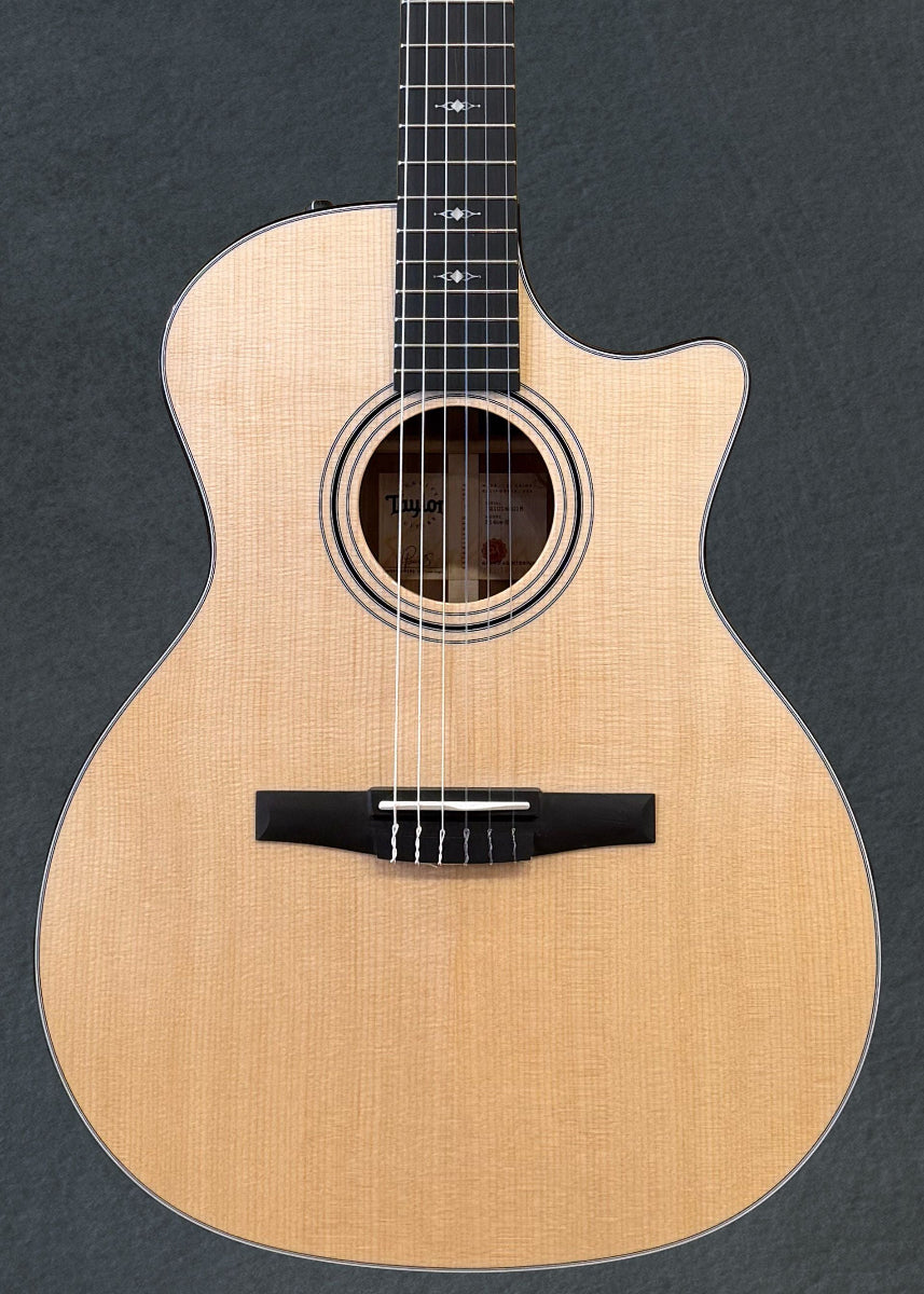 Natural, Grand Auditorium body shape with the Venetian cutaway, Sitka Spruce top, Three Ring Plastic Rosette, Nylon series bracing, Sapele back and sides, Black binding, West African Crelicam Ebony fingerboard with the Italian Acrylic Gemstone inlays on a Tropical Mahogany neck, 25.5” scale length, 1 7/8th” nut width, With the ES-N pickup system and hardshell case