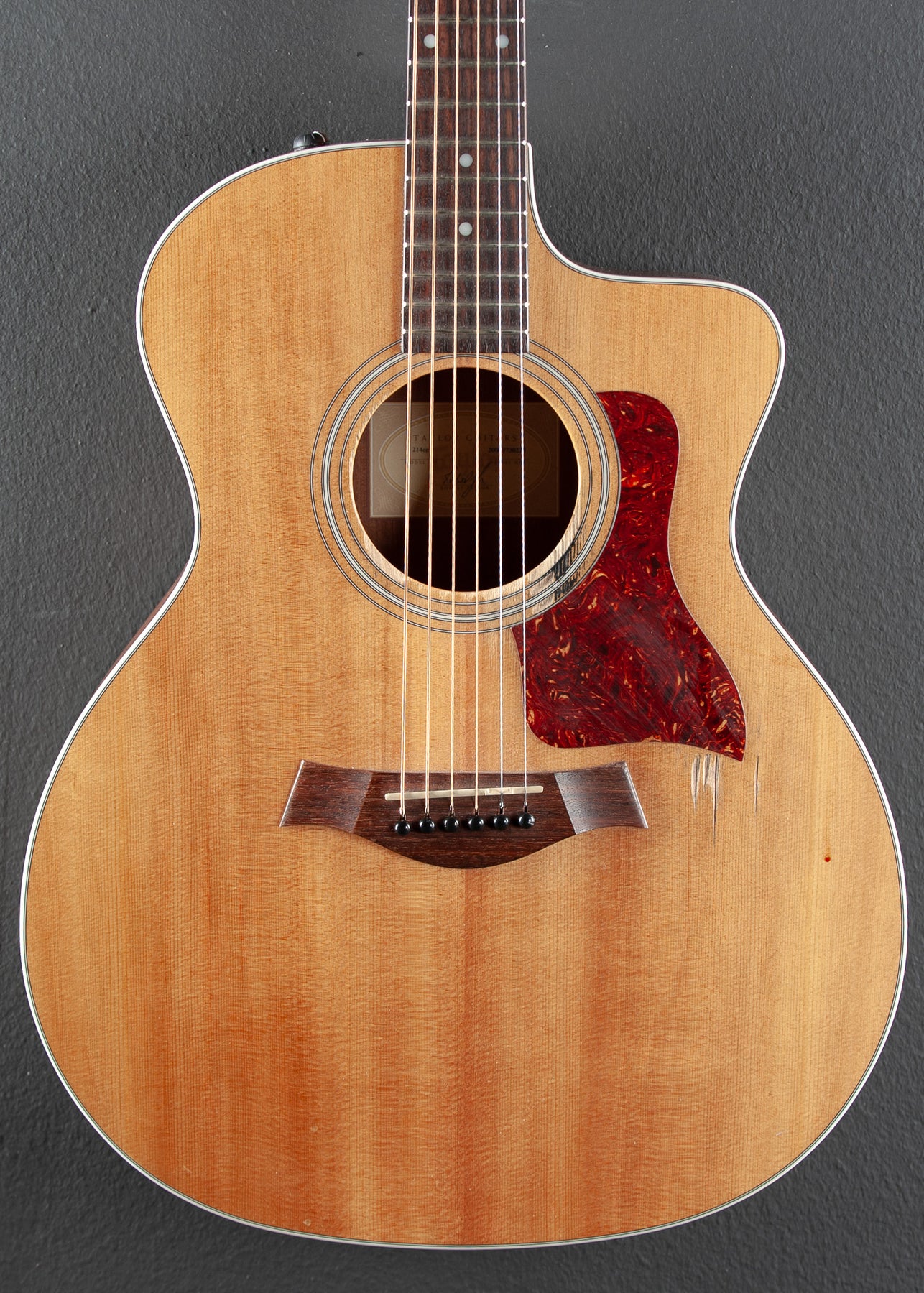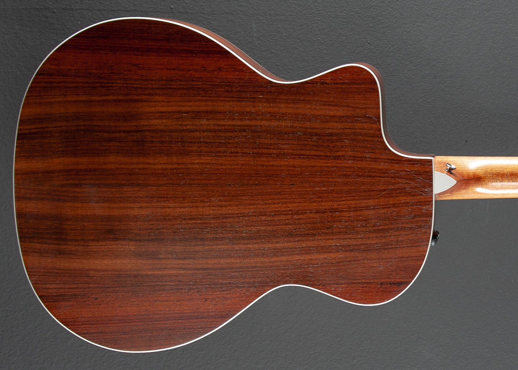 Natural, Grand Auditorium body shape with Venetian cutaway, Sitka Spruce top, three ring plastic rosette, forward shifted pattern bracing, laminated Rosewood back and sides, white binding, 12" radius Rosewood fingerboard with dot inlays on a Tropical Mahogany neck, 25.5” scale length, 1 and 11/16th” width at the nut, With Expression pickup system and  hardshell case, Good
