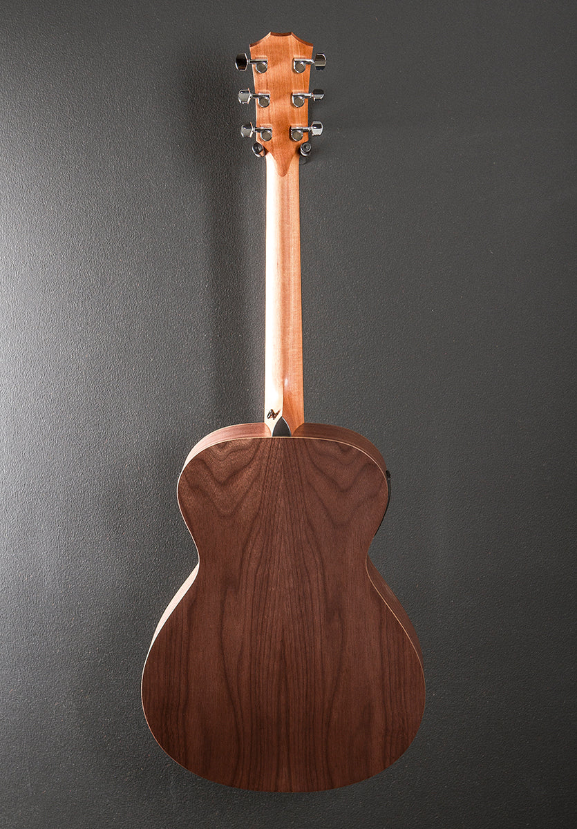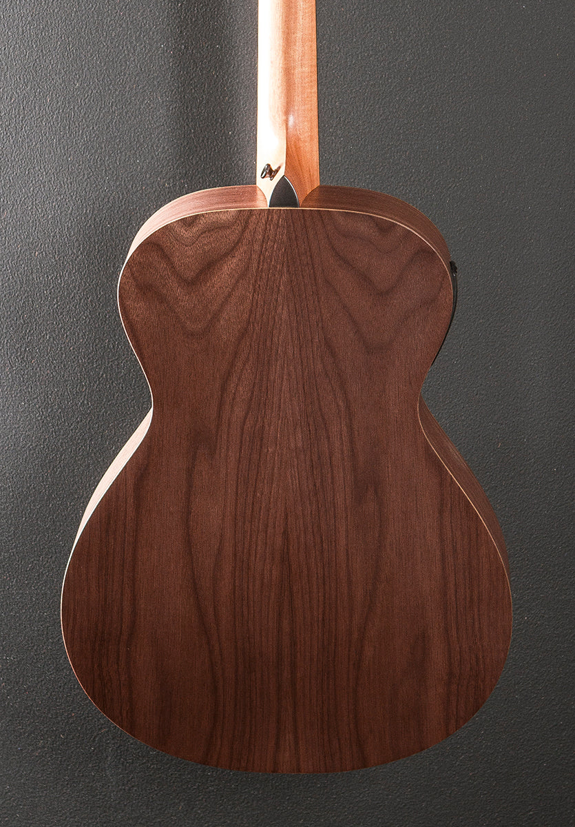 Natural, Matte finish, Grand Concert body shape with the armrest, Torrefied Spruce top, Three Ring Baltic Birch Rosette, Academy series X bracing, Layered Walnut back and sides, Eucalyptus fingerboard with the Italian Acrylic 4mm dot inlays on a Hard Rock Maple neck, 24 7/8th” scale length, 1 11/16th” nut width, Cast/sealed tuners, The neck thickness is .82″ at the first and .87″ at the 9th frets, With the ES-B pickup system and gig bag, Excellent
