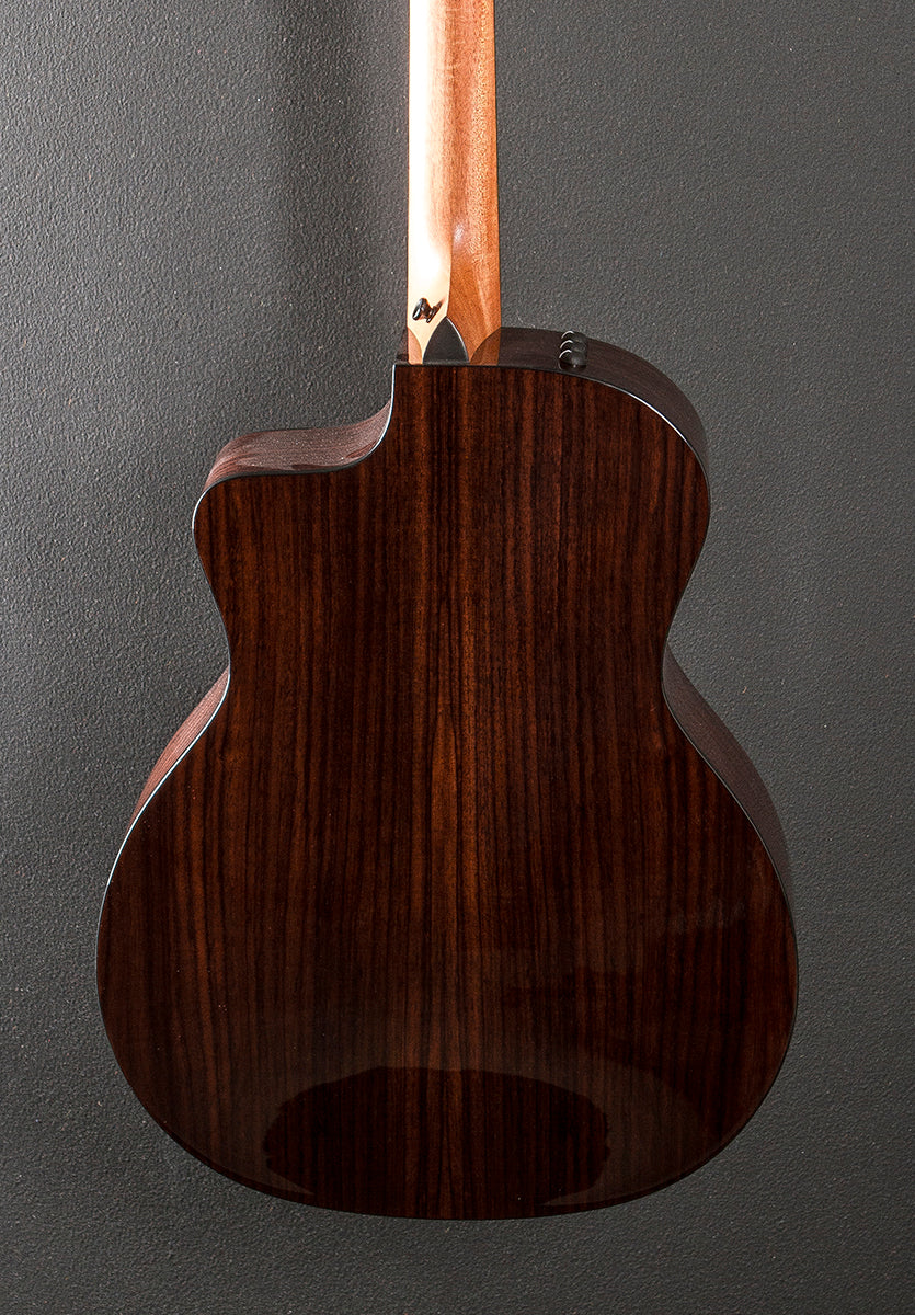 Natural, Gloss top and body finish, Grand Auditorium body shape with the venetian cutaway, Torrefied Spruce top, Single Ring Faux Pearl Rosette, C-Class Bracing with Relief Rout, Layered Indian Rosewood back and sides, Black binding, West African Crelicam Ebony fingerboard with the faux pearl 4mm dot inlays on a Neo-Tropical Mahogany neck, 25.5” scale length, 1 11/16th” nut width, Cast/sealed tuners, The neck thickness is .83″ at the first and .87″ at the 9th frets, With the Expression 2 pickup system and Aerocase hard bag, Excellent
