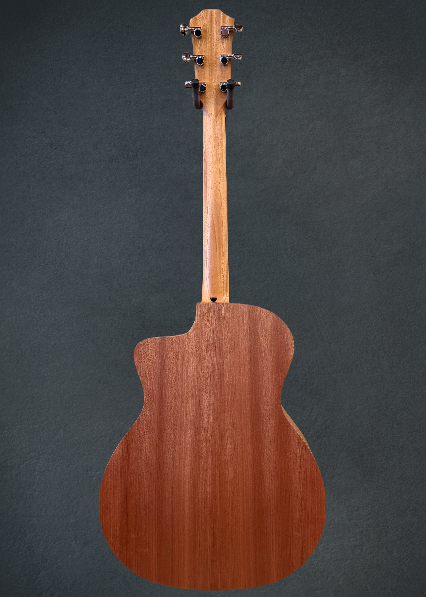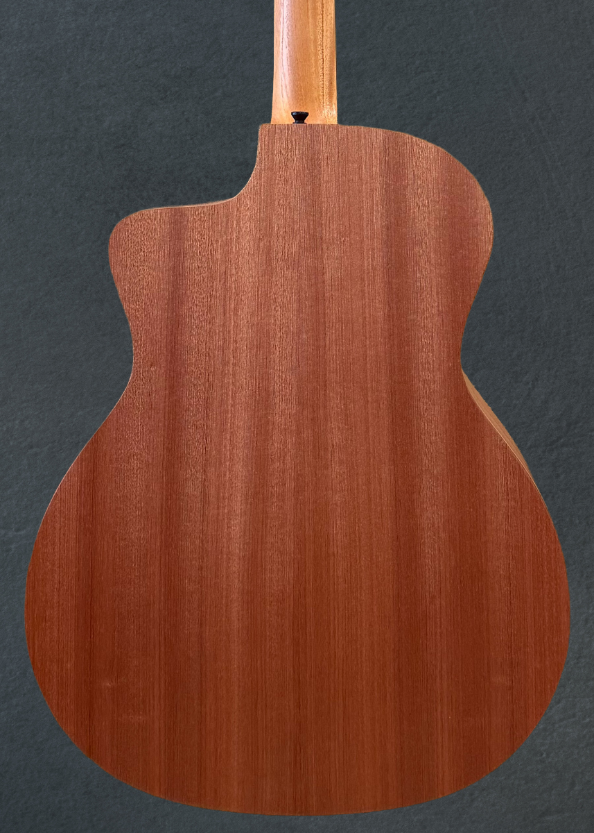 Natural, Matte finish, Grand Auditorium body shape with the venetian cutaway, Neo-Tropical Mahogany top, Single Ring Black Plastic Rosette, C-Class Bracing with Relief Rout, Layered Sapele back and sides, West African Crelicam Ebony fingerboard with the faux pearl 4mm dot inlays on a Hard Rock Maple neck, 25.5” scale length, 1 11/16th” nut width, With the Fishman Sonitone GT2 pickup system and gig bag