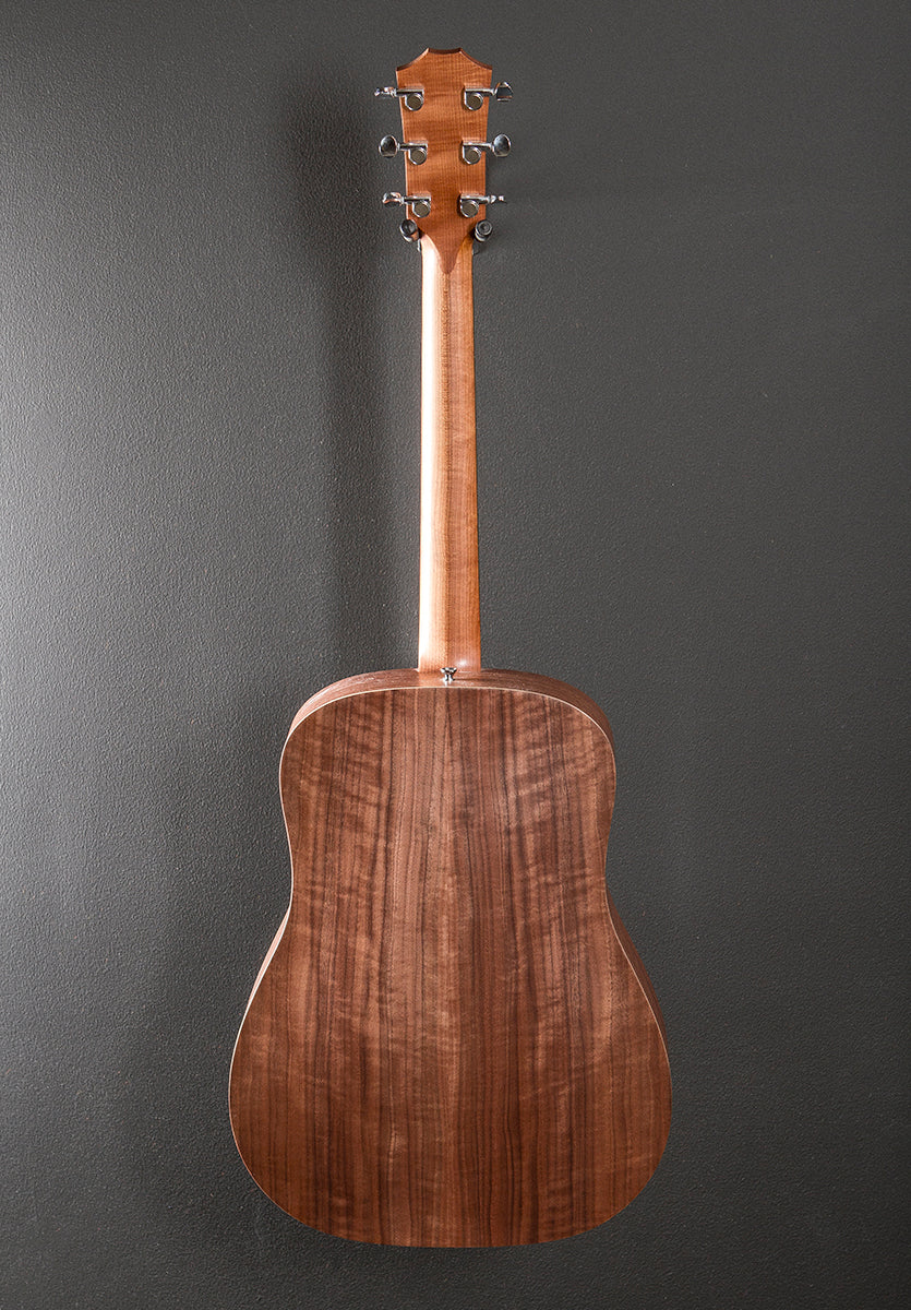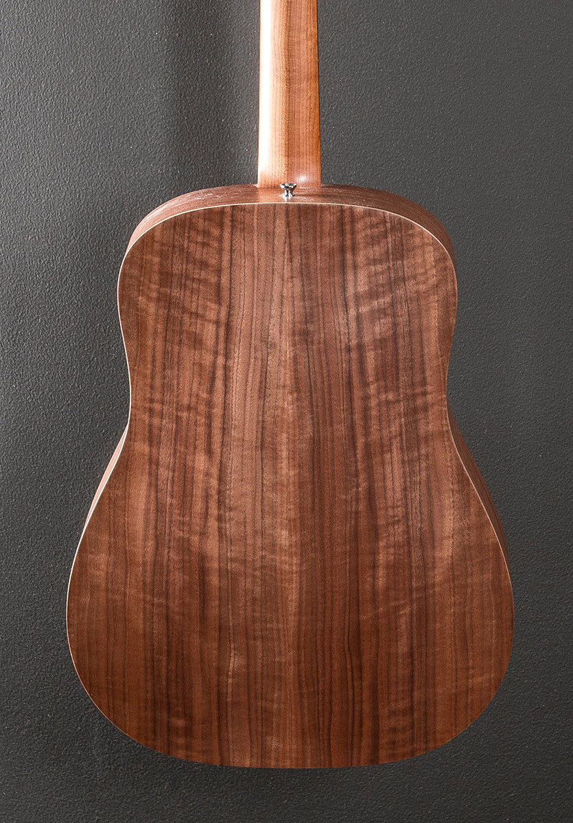 Natural, Matte finish, 15/16th Big Baby Dreadnought body shape, Walnut top, Single Ring Plastic Rosette, X bracing, Layered Walnut back and sides, West African Crelicam Ebony fingerboard with the Italian Acrylic 4mm dot inlays on a Hard Rock Maple neck, 25.5″ scale length, 1 11/16th” nut width, Cast/sealed tuners, The neck thickness is .83″ at the first and .87″ at the 9th frets, With gig bag, Very good