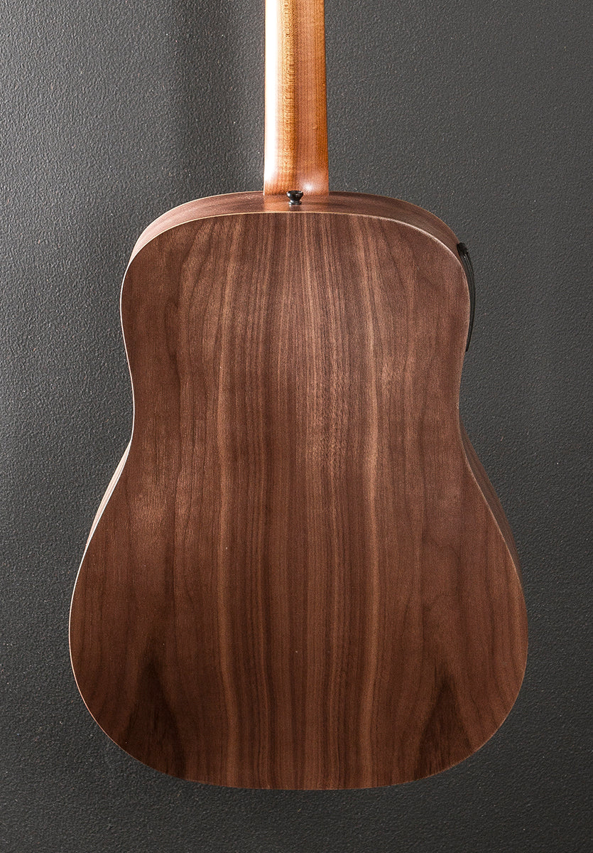 Natural, Matte finish, 15/16th Big Baby Dreadnought body shape, Torrefied Spruce top, Single Ring Plastic Rosette, X bracing, Layered Walnut back and sides, Eucalyptus fingerboard with the Italian Acrylic 4mm dot inlays on a Hard Rock Maple neck, 25.5″ scale length, 1 11/16th” nut width, Cast/sealed tuners, The neck thickness is .82″ at the first and .87″ at the 9th frets, With the ES-B pickup system and gig bag, Excellent