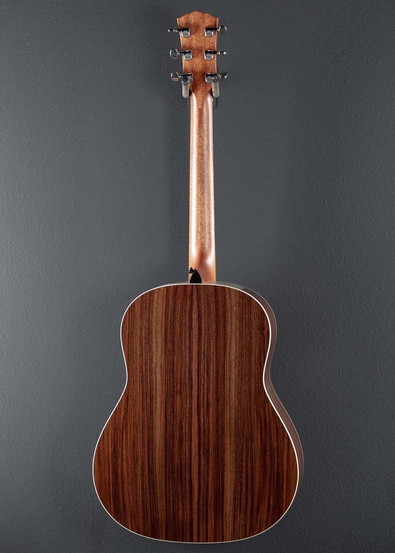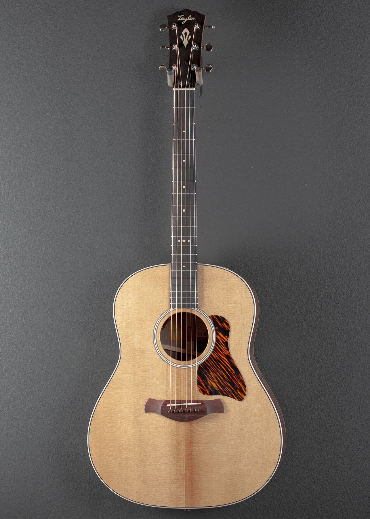 Natural, Gloss top and body finish, Grand Pacific Round Shoulder Dreadnought body shape, Torrefied Sitka Spruce top, Single Ring Cream Rosette, Fanned V-Class bracing with Tonal Rout, Indian Rosewood back and sides, Cream binding, West African Crelicam Ebony fingerboard with Cream Crest inlays on a Neo-Tropical Mahogany neck, 25.5" scale length, 1 3/4" nut width, Cast/sealed tuners, L.R. Baggs Element VTC pickup system and Taylor hardshell case, very good