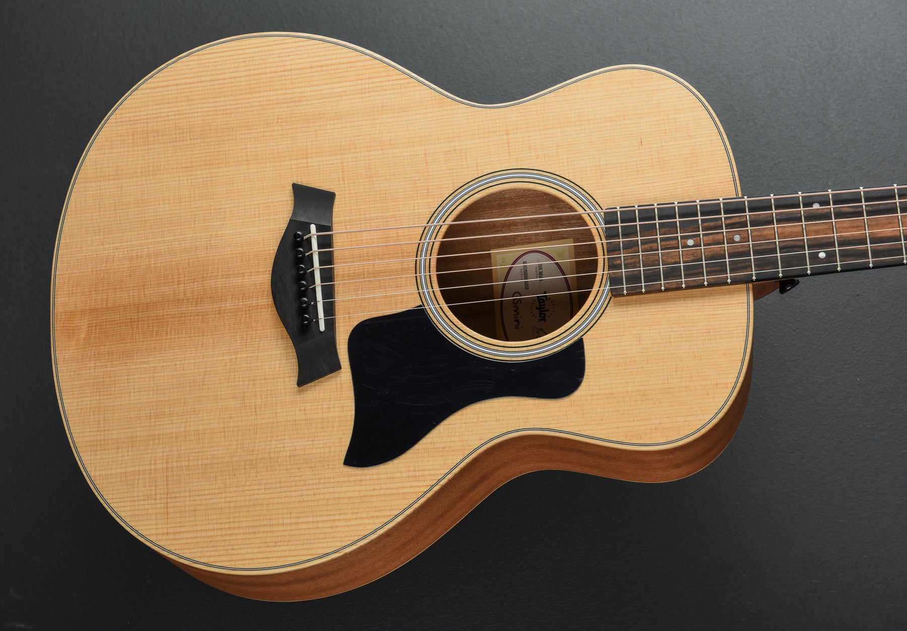 Natural, Matte finish, Miniature Grand Symphony body shape, Torrefied Spruce top, Three Ring Plastic Rosette, GS Mini with Relief Rout bracing, Layered Sapele back and sides, Ebony fingerboard with Italian Acrylic 4mm dot inlays on a Tropical Mahogany neck, 23.5″ scale length, 1 11/16th” nut width, Cast/sealed tuners, With gig bag, Excellent