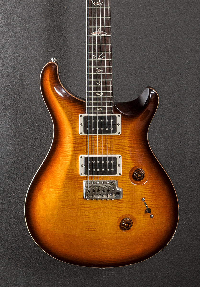 Tobacco Sunburst, Gloss finish, Violin carved figured Maple top, Mahogany body, Pattern Thin carved Mahogany neck, 10″ radius Rosewood fingerboard with the Bird inlays, 25″ scale length, 1 11/16th” nut width, PRS 59/09 bridge and neck pickups, 5-way blade switching with the master volume and tone controls, PRS tremolo and PRS locking tuners, The neck thickness is .81″ at the first and .87″ at the 12th frets, 7.8 pounds, With the PRS hardshell case, Very good