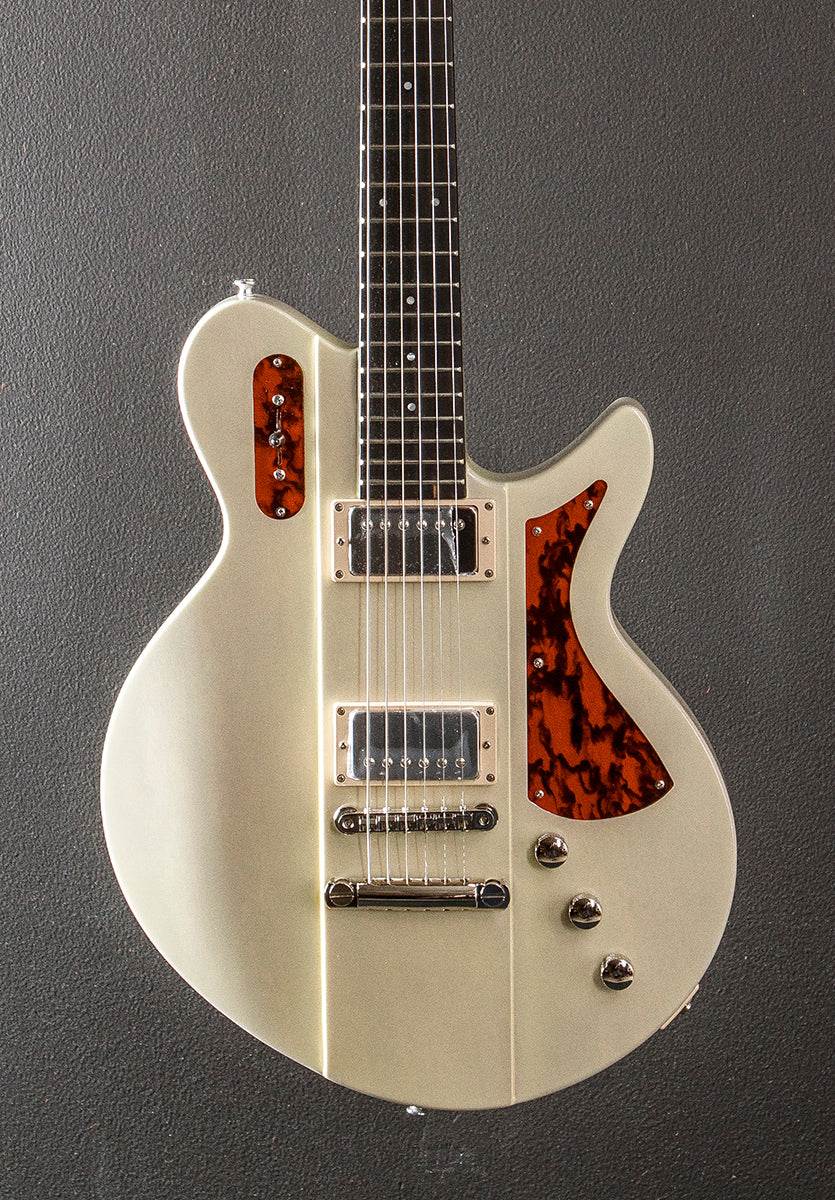 Pomona Blonde, Gloss finish, One piece Okoume body, 12” radius Ebony fingerboard with the pearl dot inlays on a one piece Okoume neck, 25.5" scale length, 1 11/16th" nut width, Bare Knuckle Old Guard humbucking bridge and neck pickups, 3-way switching with the volume/volume/tone controls, Gotoh tune-o-matic bridge and stop tailpiece, Gotoh SD91 tuners, The neck thickness is .86″ at the first and .98″ at the 12th frets, 7.2 pounds, With gig bag, Excellent