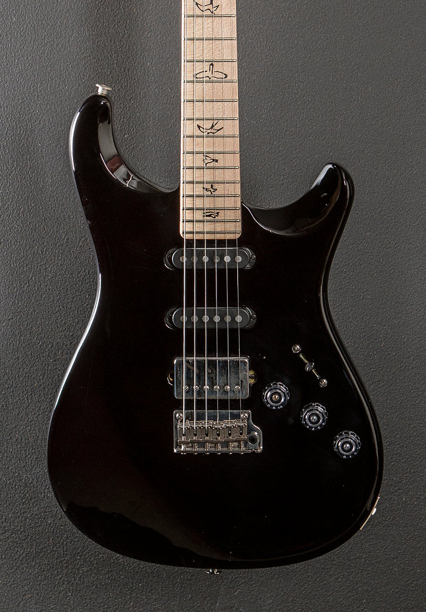 Black Iris, High gloss nitro body finish, Swamp Ash body, Fiore shaped Maple neck with a 10” radius Maple fingerboard and the Bird inlays, 25.5” scale length, 1 21/32nd" nut width, Fiore H bridge and Fiore S middle/neck pickups, 5-way blade switching with the master volume and two push/pull tone controls, Two-point steel tremolo with the bent steel saddles, Vintage style locking tuners, The neck thickness is .86″ at the first and .96″ at the 12th frets, 7.6 pounds, With gig bag, Very good
