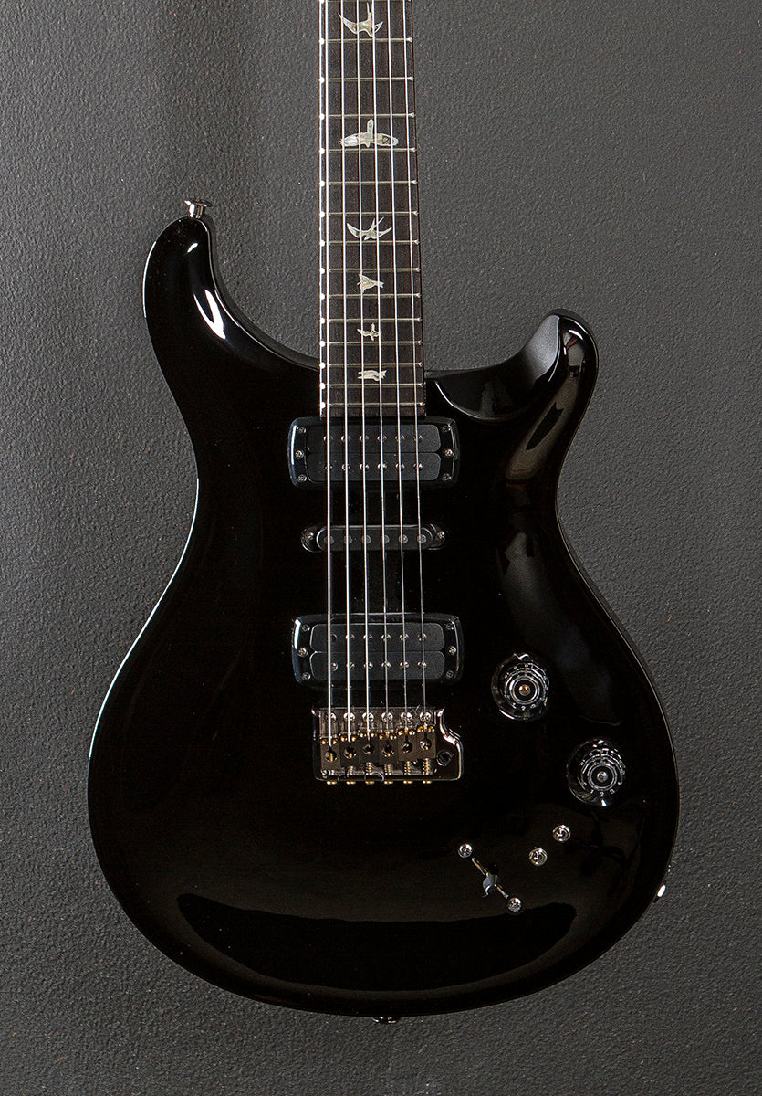 Smoked Black, High gloss nitro finish, Violin carved figured Maple top, Mahogany body, Pattern carved Mahogany neck, 10" radius Rosewood fingerboard with the Bird inlays, 25″ scale length, 1 11/16th" nut, PRS TCI bridge and neck pickups plus the NS-01 middle pickup, 5-way blade switching with the volume and push/pull tone controls plus the two mini-toggle coil tap switches, PRS Gen III tremolo, PRS Phase III locking tuners with the wing buttons, The neck thickness is .88″ at the first and .96″ at the 12th frets, 8.0 pounds, With the PRS hardshell case, Excellent