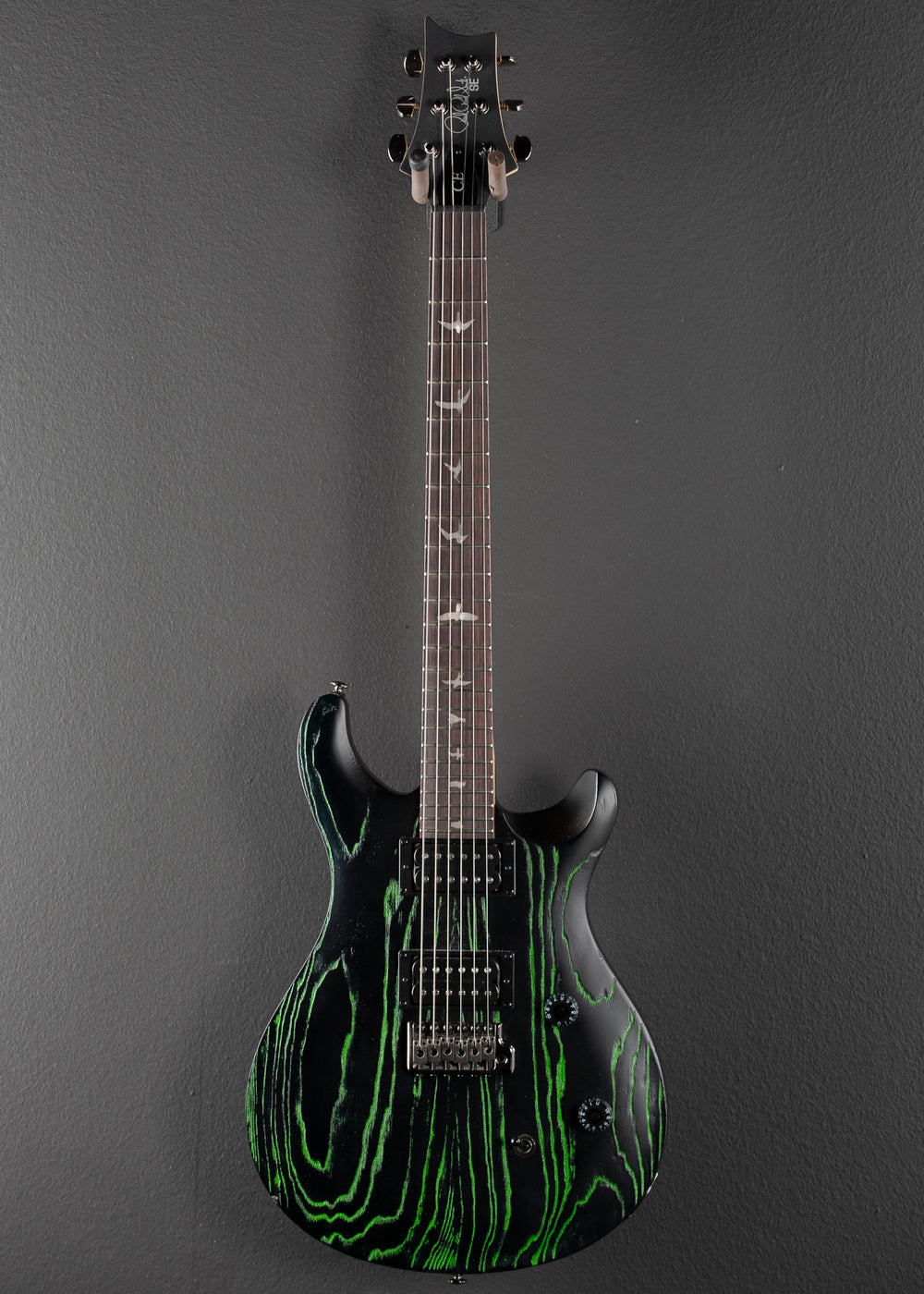 Sandblasted Green, Shallow violin carved Swamp Ash top on a Mahogany body, Wide/Thin carved bolt-on Maple neck, 10″ radius Rosewood fingerboard with the Bird inlays, 25″ scale length, 1 11/16th″ nut width, PRS 85/15 “S” bridge and neck pickups, 3-way toggle switching with the volume and push/pull coil tap tone controls, PRS patented molded tremolo and PRS designed tuners, 7 pounds, With gig bag. Very Good