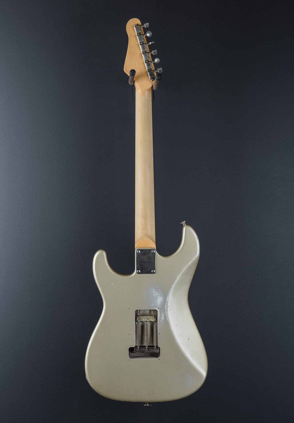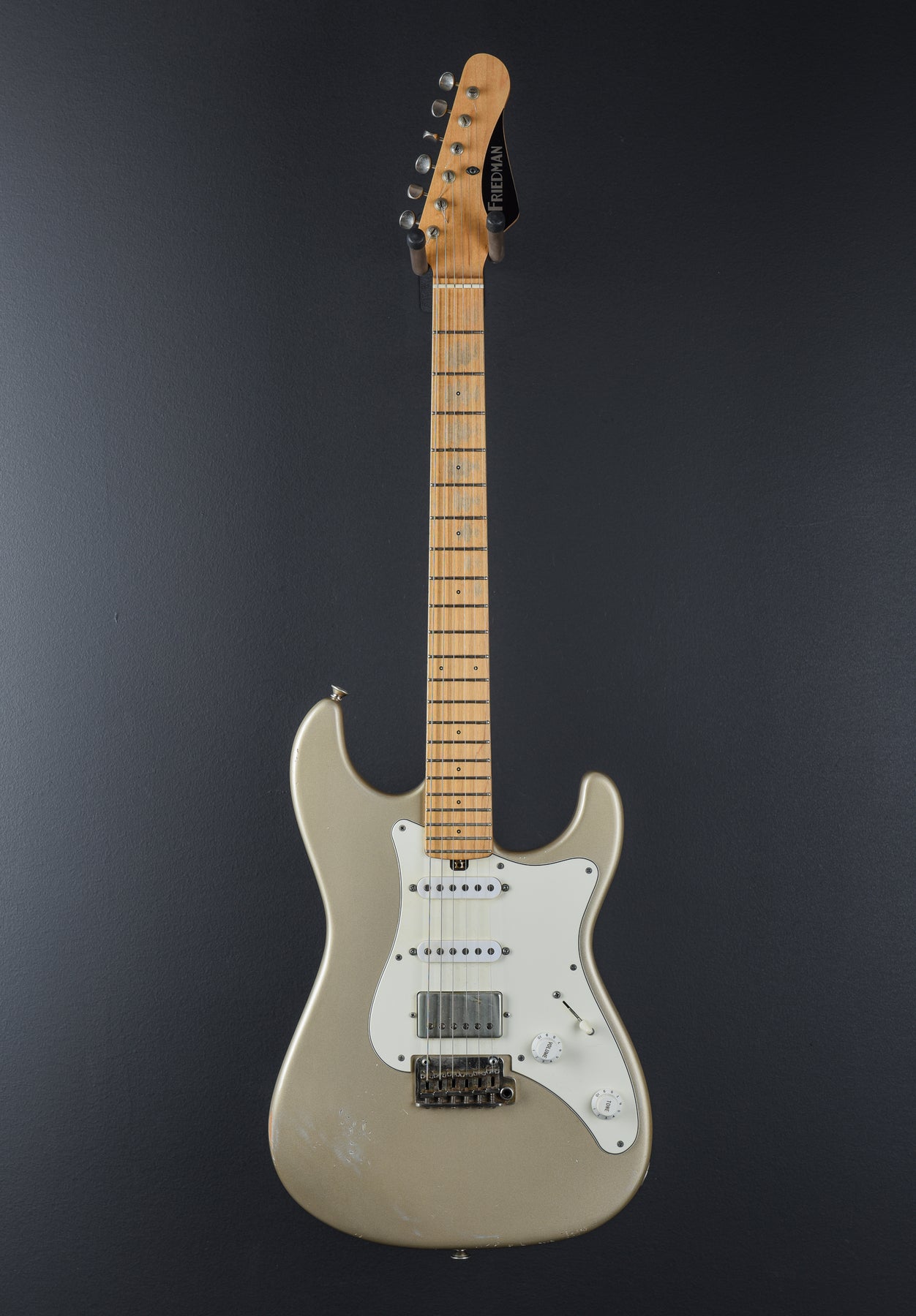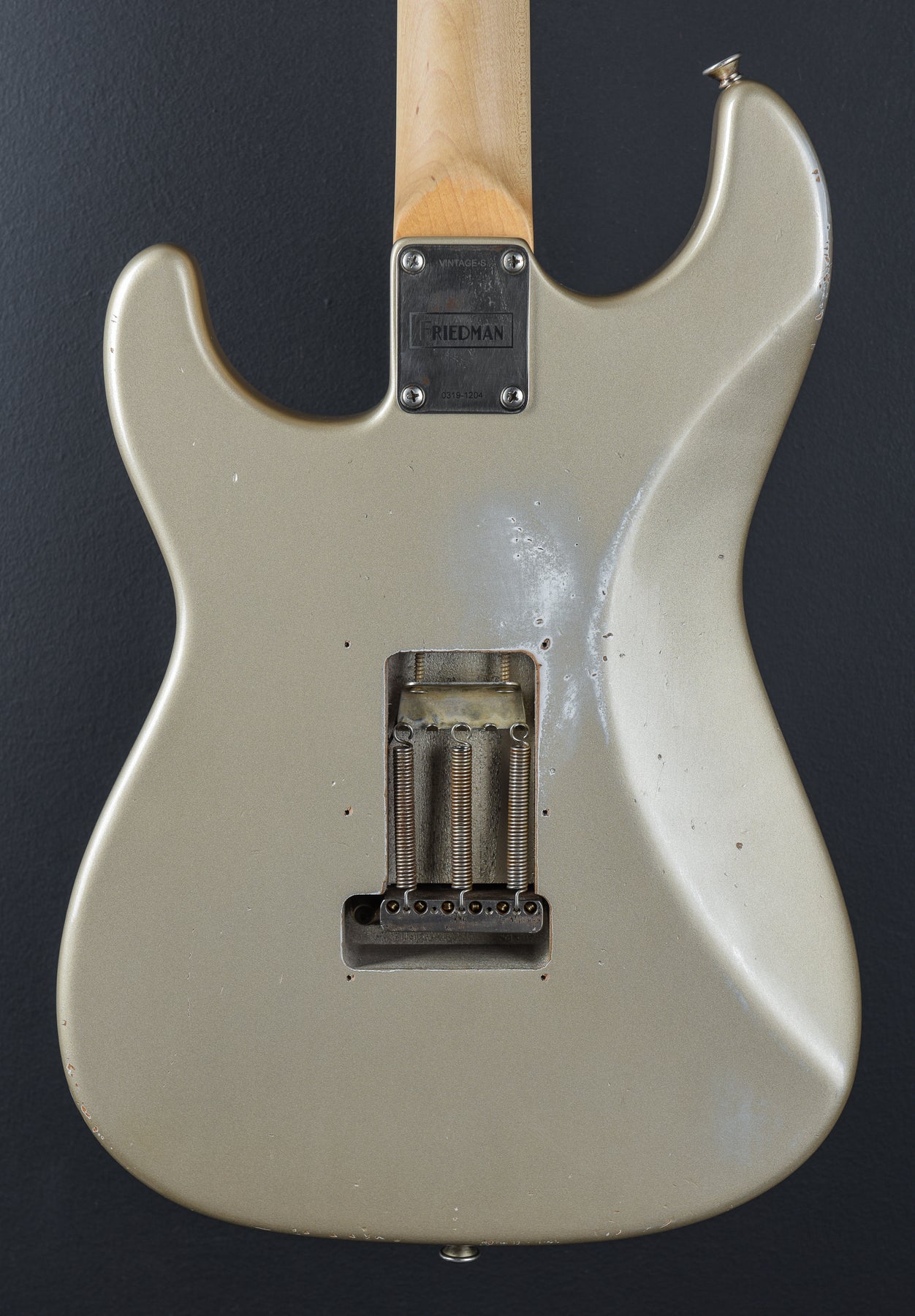 Very Good Condition, Made in USA, Antique Silver Aged Nitrocellulose Lacquer Finish, Alder Body, Medium “C” Shaped Maple Neck with a 10″–14″ Compound Radius Maple Fingerboard and Jescar FW47095 Nickel/Silver Frets, 25.5″ Scale Length, 1 5/8″ Nut Width, Friedman Classic Single-Coil S Neck and Middle Pickups with a Nickel-Covered Classic Humbucker Bridge Pickup, 5-Way Switching with Master Volume and Tone Controls, Vintage-Style Tremolo with Bent Saddles, Gotoh Vintage-Inspired Locking Tuners, Neck Thickness of .82″ at the 1st Fret and .94″ at the 12th Fret, 7.25 Pounds, Comes with the Original Hardshell Case.