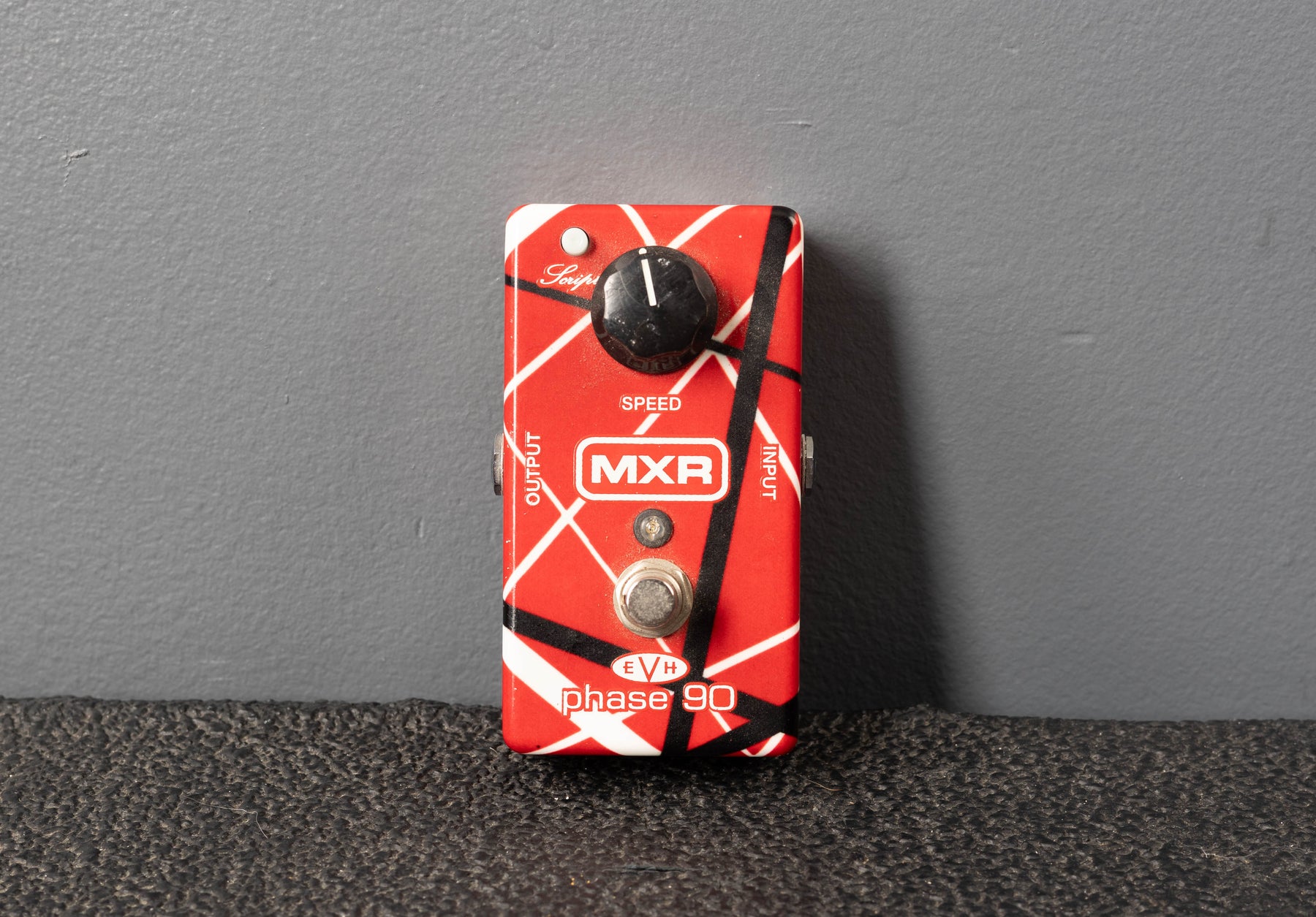 "Grab a piece of Eddie's magic with the MXR EVH 90—a collaboration between Eddie Van Halen and Dunlop Manufacturing that represents an updated version of the legendary Phase 90. The EVH 90 will give you the same great spacey swirls and hypnotic warbles that made the Phase 90 famous. But the EVH 90 also features the all-new Script switch that lets you instantly toggle between a vintage, "Script Logo" phase tone and a more modern, in-your-face "Block Logo" phaser. Plus, the EVH 90 sports the greatest graphics in the history of rock: the red, white, and black stripes from Eddie's legendary Frankenstein guitar."