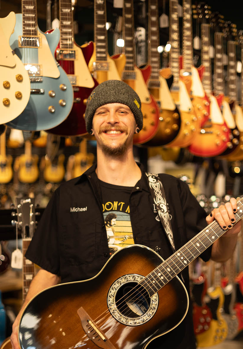 I'm Michael and I've been a part of the Dave's Guitar team since October of 2023. My passion for the 6-string started like many young folk: receiving Guitar Hero II for my 12th birthday. Rock 'n' roll became my addiction, and to this day, it's a huge part of who I am. I love guitars of all shapes and sizes, but my heart falls for the voluptuous round mound of vintage Ovations. Working at Dave's has been a blast and I've been taught so much about guitar learning alongside Phil and Ed on the bench. The knowledge graciously passed on to me every day is something I am very thankful for and I am proud to be on such an outstanding team!
