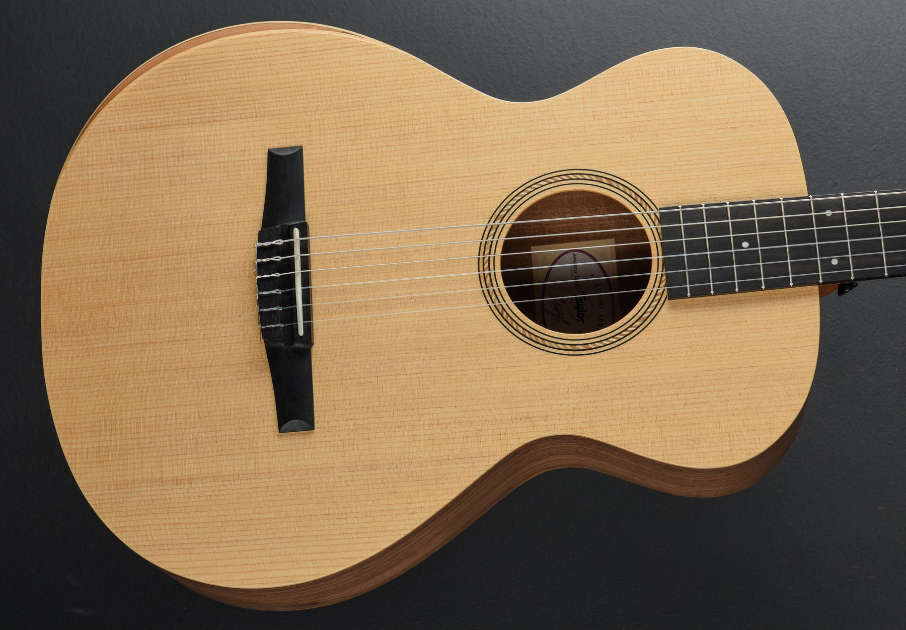 Natural, Matte finish, Grand Concert body shape with the armrest, Torrefied Spruce top, Three Ring Wood/Fiber Rosette, Academy series bracing, Layered Walnut back and sides, West African Crelicam Ebony fingerboard with the Italian Acrylic 4mm dot inlays on a Mahogany neck, 25.5” scale length, 1 7/8th” nut width, Strip tuners, The neck thickness is .83″ at the first and .89″ at the 9th frets, With the ES-N pickup system and gig bag, Excellent