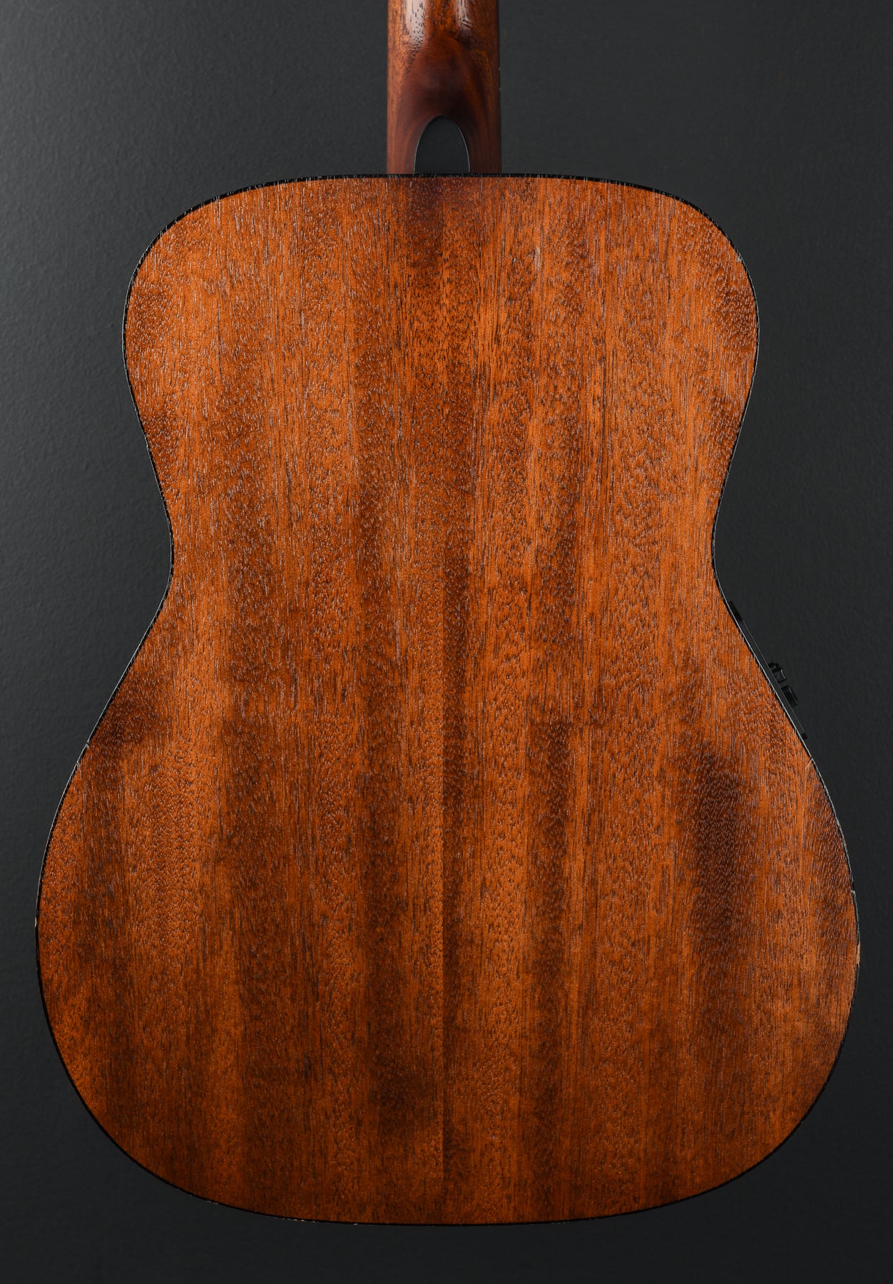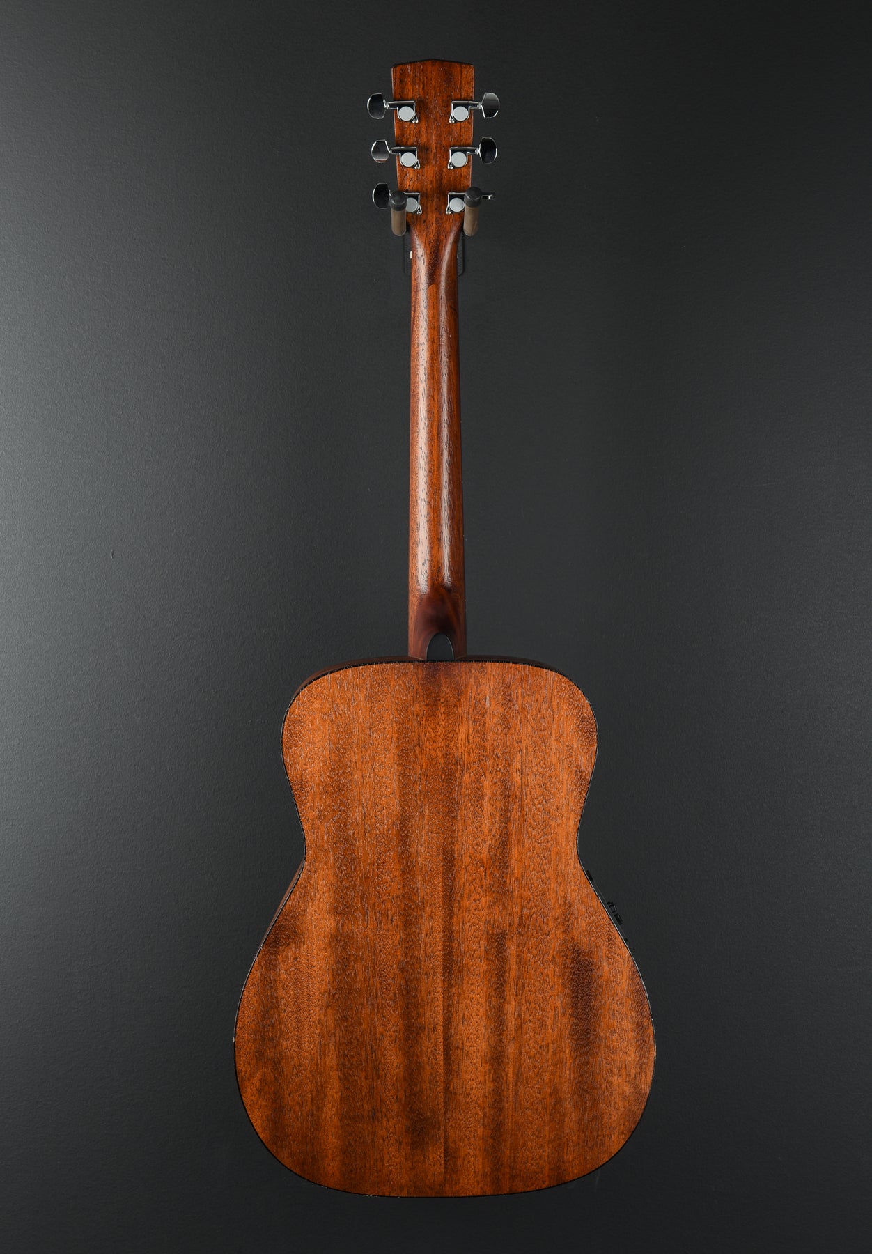 Natural, Concert body with spruce top, mahogany back and sides, X-bracing, 25.5″ Mahogany neck with a Merbau fretboard, 1 11/16″ PPS nut with die-cast tuners. Laurel bridge with PPS saddle, with Gig Bag. Very Good
