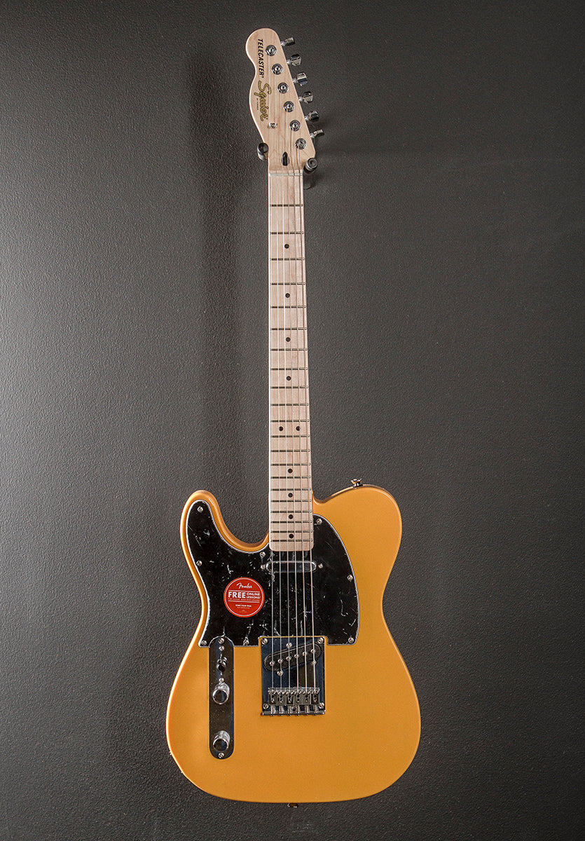 Butterscotch Blonde, Crafted in Indonesia, Gloss polyurethane body finish, Poplar body with the rear contour, C shaped Maple neck with a 9.5” radius Maple fingerboard and medium jumbo frets, 25.5" scale length, 1.650" nut width, Ceramic single coil Tele bridge and neck pickups, 3-way switching with the master volume and tone controls, String thru body Tele bridge with the block steel saddles, Sealed die-cast tuners with the split shafts, 8.0 pounds, Case not included