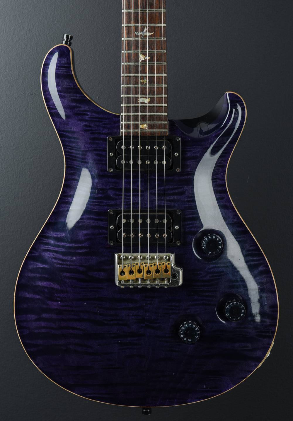 10 top Purple, Carved figured Maple top, Mahogany body, Wide/Thin carved Mahogany neck, 10" radius Rosewood fingerboard with the Bird inlays, 25″ scale length, 1 11/16th" nut, PRS HFS bridge and Vintage neck pickups, 5-way rotary switching, PRS tremolo and locking tuners, 8.1 pounds.