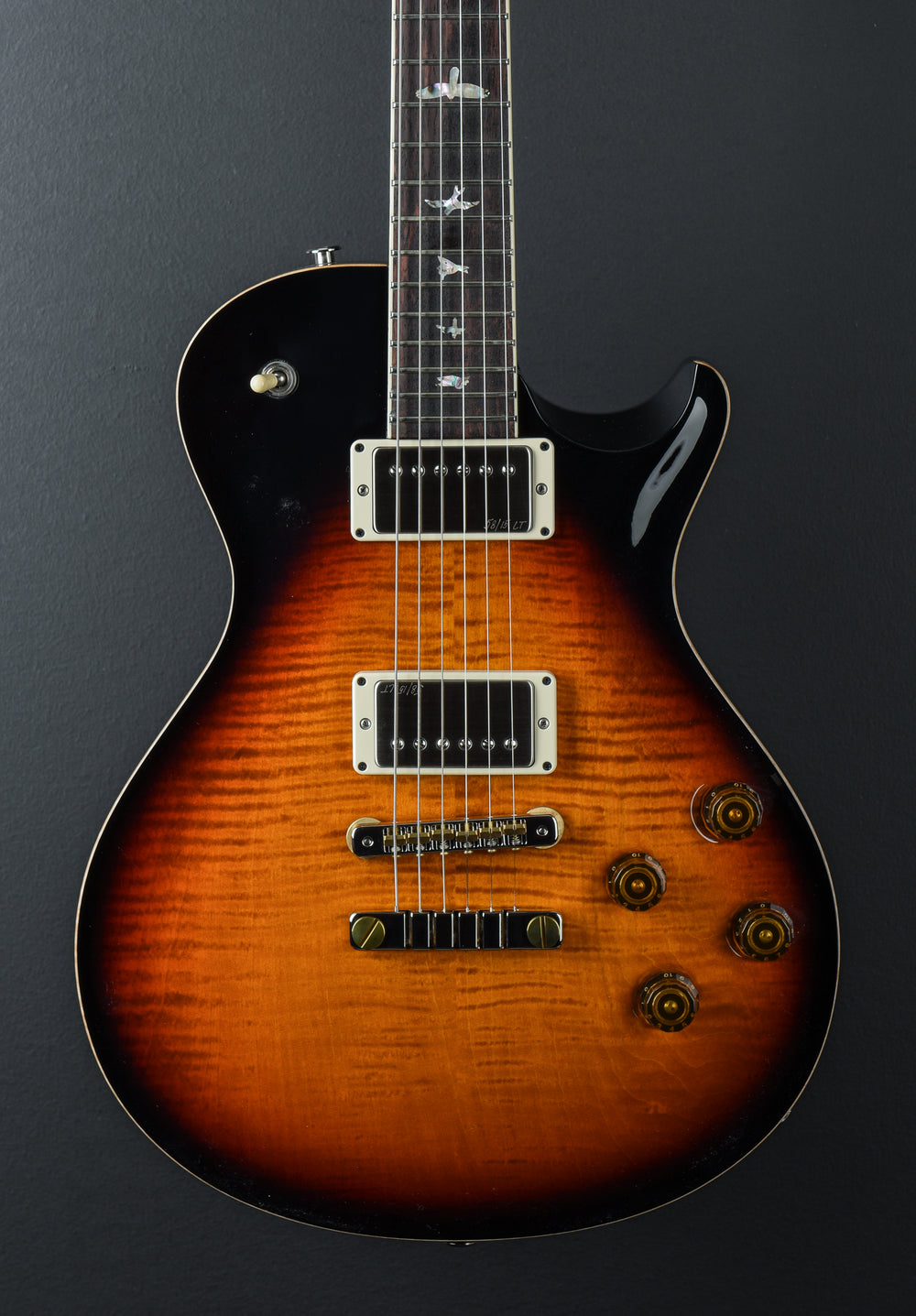 Tri Color Burst, Carved figured Maple top, Mahogany body, Pattern Vintage carved Mahogany neck, 10″ radius Rosewood fingerboard with the "Old School" Bird inlays and faux bone binding, 24.594″ scale length, 1 11/16th” nut width, PRS 58/15LT+ bridge and neck pickups, 3-way toggle switching with the volume and push/pull coil tap tone controls for each pickup, PRS two-piece bridge and PRS phase III locking tuners, 8.4 pounds, With hardshell case