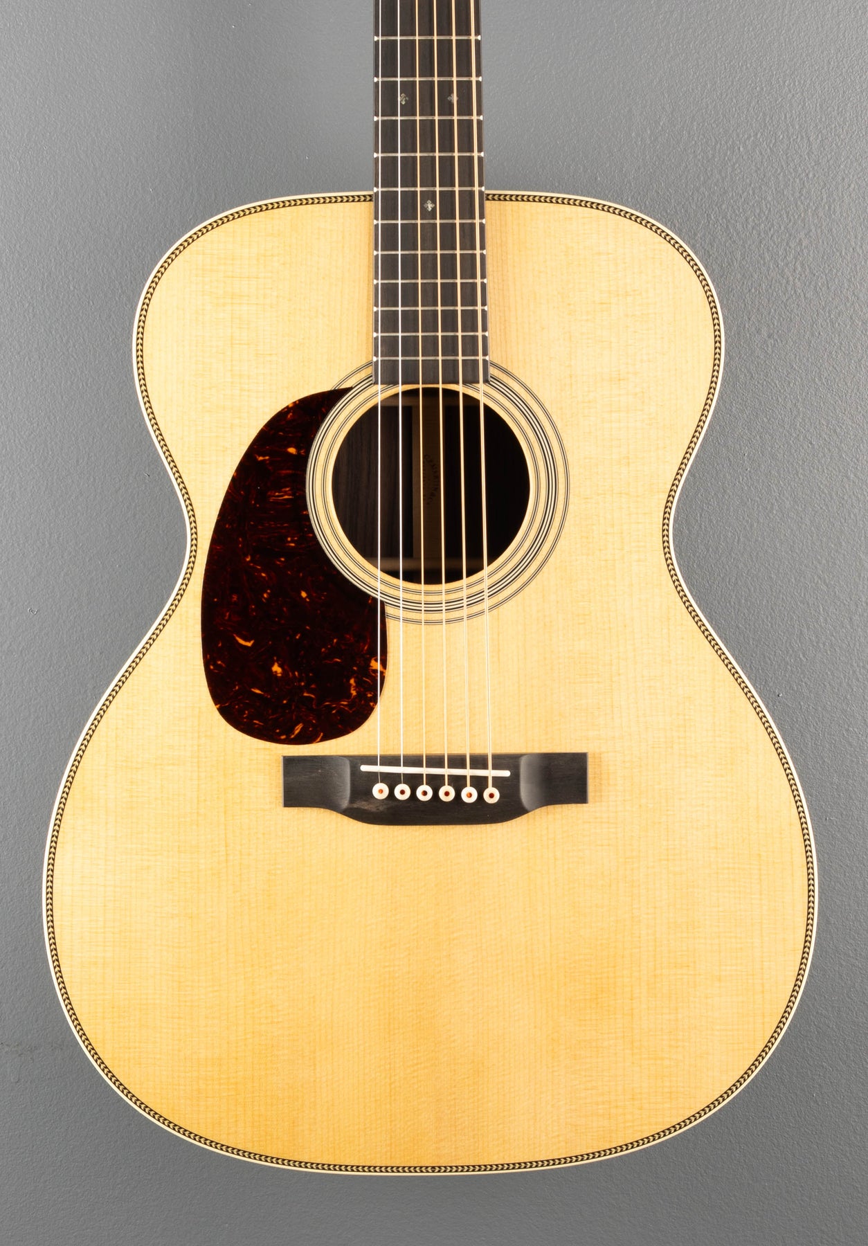 "The Martin 000-28 is one of the most iconic models in Martin’s lineup, trusted by generations of players for its versatility, tone, and timeless craftsmanship. Its Auditorium body size delivers a beautifully balanced voice across all six strings, making it equally suited for fingerstyle finesse or bold strumming. Handcrafted with a solid spruce top and solid East Indian rosewood back and sides, the 000-28 offers deep bass, rich overtones, and exceptional resonance, perfectly balanced for any playing style. The satin neck with a Golden Era (GE) Modified Low Oval profile, high-performance taper, and 24.9" scale length ensures unmatched comfort and effortless playability. Elegant details, like bold herringbone top inlay, antique white binding, an ebony bridge with bone pins, and an ebony fingerboard adorned with abalone diamond and square inlays, enhance its timeless design. Available in a variety of stunning gloss options, the 000-28 is a guitar you can trust to unleash the artist within.