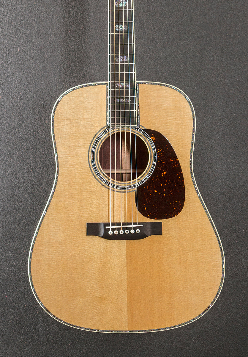 "The Martin D-45 is the pinnacle of acoustic elegance and craftsmanship, trusted by legendary artists and discerning everyday players alike. Joining the all-new OM-45 as one of the most ornate and prestigious models in the Standard Series lineup, the D-45 features stunning abalone pearl inlay throughout, adorning the top, sides, and back. Its Dreadnought body size delivers the bold, projective tone with strong bass, clear trebles, and rich overtones that Martin Dreadnoughts are known for, perfectly balanced for all playing styles. Handcrafted with a solid spruce top and solid East Indian rosewood back and sides, the D-45 produces a resonant, powerful voice. The gloss genuine mahogany neck, with a Golden Era (GE) Modified Low Oval profile, high-performance taper, and 25.4" scale length, ensures smooth, comfortable playability. Complete with antique white binding, a bound ebony fingerboard with hexagon inlays, an ebony bridge with bone pins, and gold open gear tuners, the D-45 is a guitar you can trust to inspire, impress, and unleash the artist within.