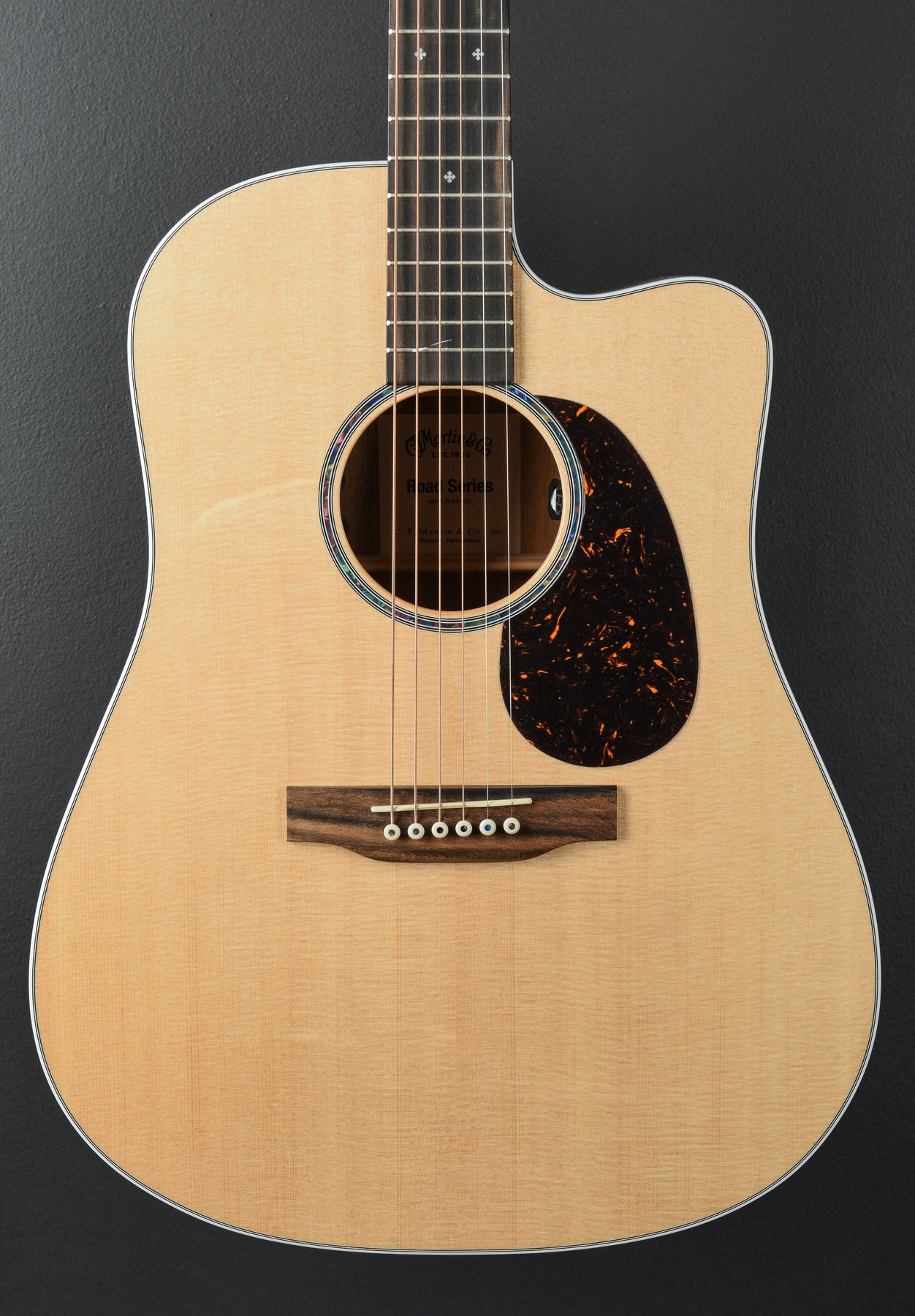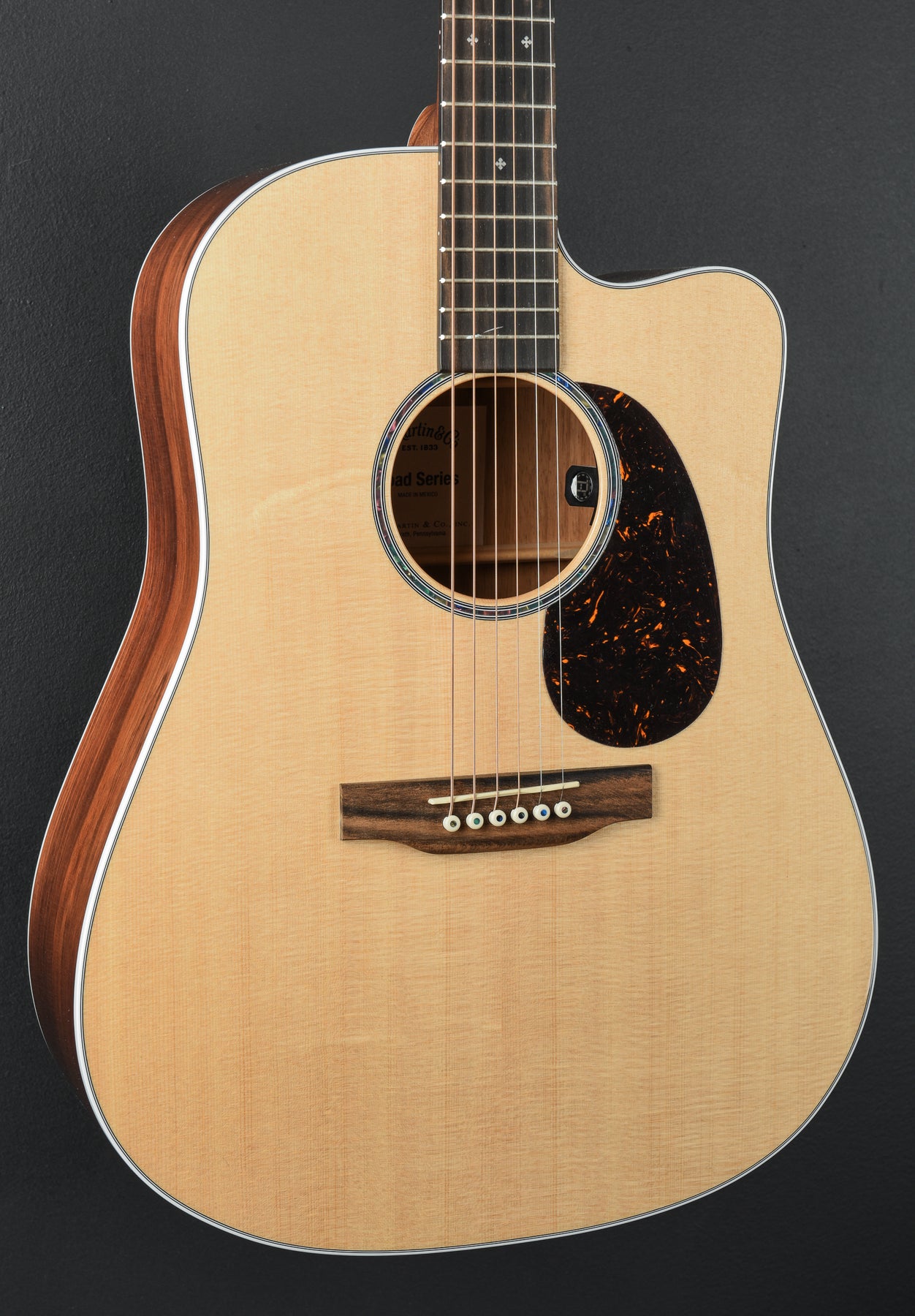 "The Martin DC-13E Modern blends contemporary style with stage-ready performance. Its gloss Dreadnought cutaway body combines a solid spruce top with koa fine veneer back and sides for clear, balanced tone with shimmering highs and long, even sustain. Scalloped X-bracing boosts volume and responsiveness, while the cutaway gives full access to the upper frets. The Performing Artist neck with high-performance taper delivers fast, comfortable playability, and eye-catching details like white binding, diamond-and-square inlays, and Ratio® skeletonized open gear tuners bring a modern twist to a classic look. Equipped with versatile E1 electronics, a built-in tuner, and a softshell case, the DC-13E Modern is a sleek, inspiring tool for creating, gigging, and pushing your sound forward."