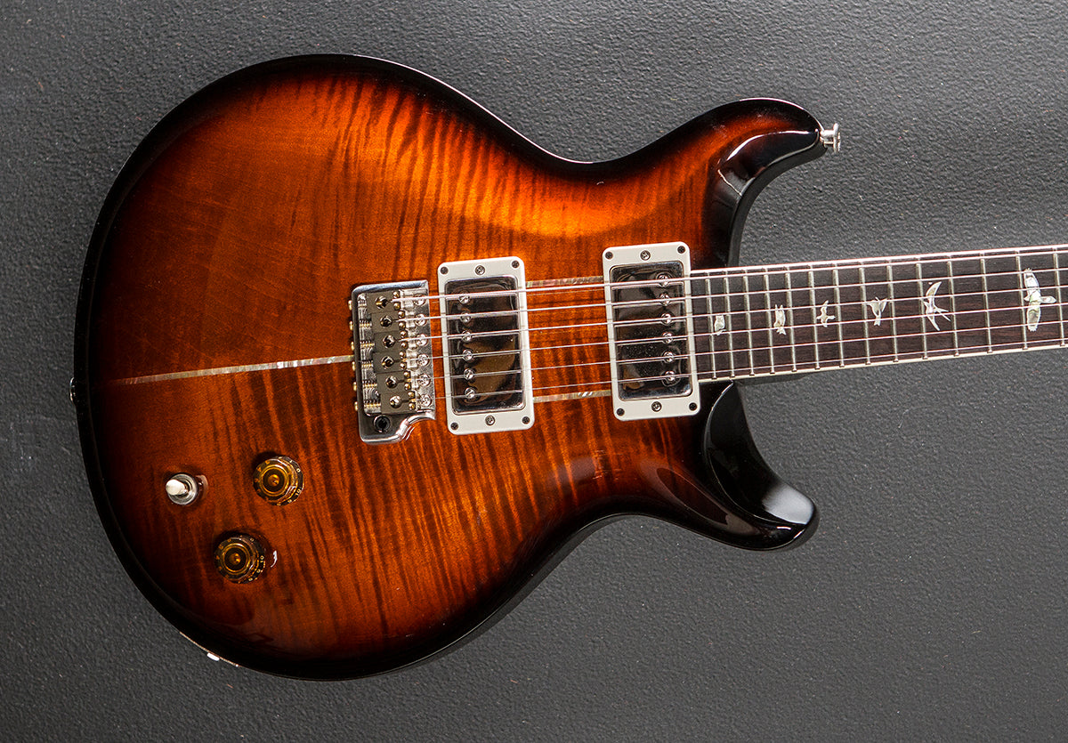 Tri-Color Wraparound Burst, High gloss nitro finish, Violin carved figured Maple top, Mahogany body, Santana Retro carved Mahogany neck, Bound 10″ radius Rosewood fingerboard with the Bird inlays, 24.594 ″ scale length, 1 11/16th” nut width, PRS Santana bridge and neck pickups, 3-way toggle switching with the master volume and tone controls, PRS Gen III tremolo and PRS Phase III locking tuners, The neck thickness is .87″ at the first and .95″ at the 12th frets, 7.2 pounds, With the PRS harddshell case, Excellent