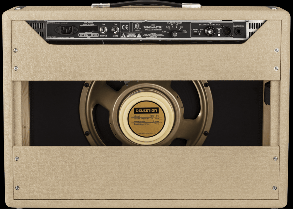 "In a bold Fender first, the Tone Master Deluxe Reverb Blonde amplifier uses massive digital processing power to achieve a single remarkable sonic feat: faithfully modeling the circuitry and 22-watt power output of an original Deluxe tube amp. A high-performance 100-watt digital power amp is used to achieve the headroom and dynamic range of a real vintage Deluxe tube amp. The resonant pine cabinet is paired with a single Celestion® NEO Creamback speaker for a more distinctive rock 'n' roll flavor. The result is tubeless Deluxe Reverb tone, volume and dynamics virtually indistinguishable from the all-tube original. The amp model has been modified to remove the virtual bright cap on the Vibrato channel, which gives modern players greater tonal flexibility when using distortion and overdrive pedals. Additionally, the reverb control now provides easier fine tuning at lower settings. Perhaps most notably, even with all these features and more, the Tone Master Deluxe Reverb is in fact about only half the weight of an all-tube Deluxe.