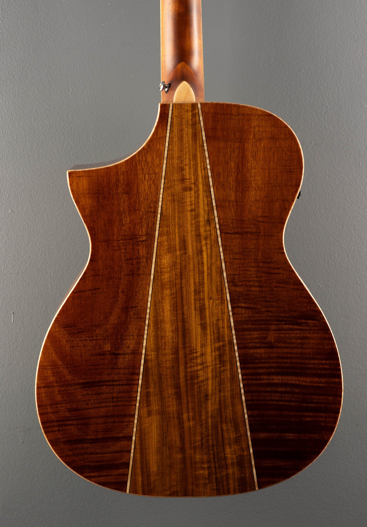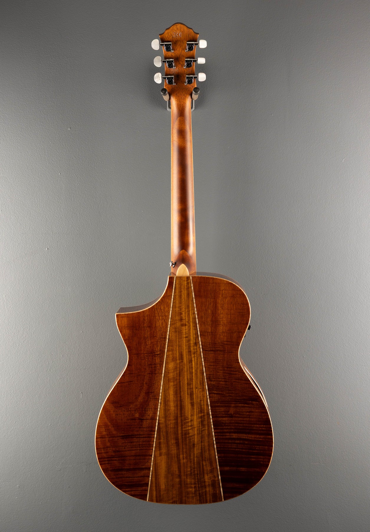 Natural, Gloss top and body finish, Solid Spruce top, Layered three piece figured Okoume/Ovangkol back, Layered figured Okoume sides, Flame Maple binding, C shaped Mahogany neck, 12" radius Ovangkol fingerboard with the Triad 12th fret/mini dot inlays and medium frets, 25.5" scale length, 1 11/16th" nut width, Cast/sealed tuners, Fishman Presys pickup system, Case not included