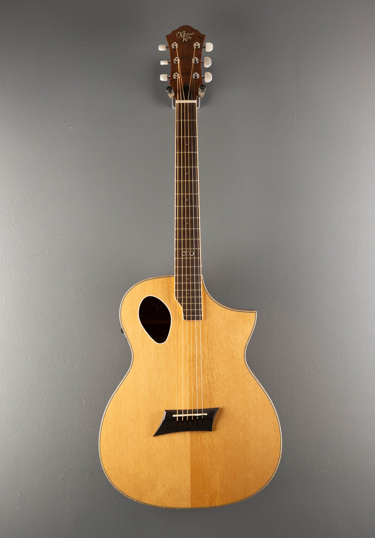 "The Triad Port has a bold new look, but it is much more. This offset soundhole placement was designed to create a larger resonate surface on the guitars' tops. The Michael Kelly craftsmen then tuned the bracing, side soundholes and top to optimize this design. You are going to love the way this sounds. The Triad Port is equipped with an active Fishman electronics system. The under saddle bridge pickup captures the full and natural sound of this great instrument."
