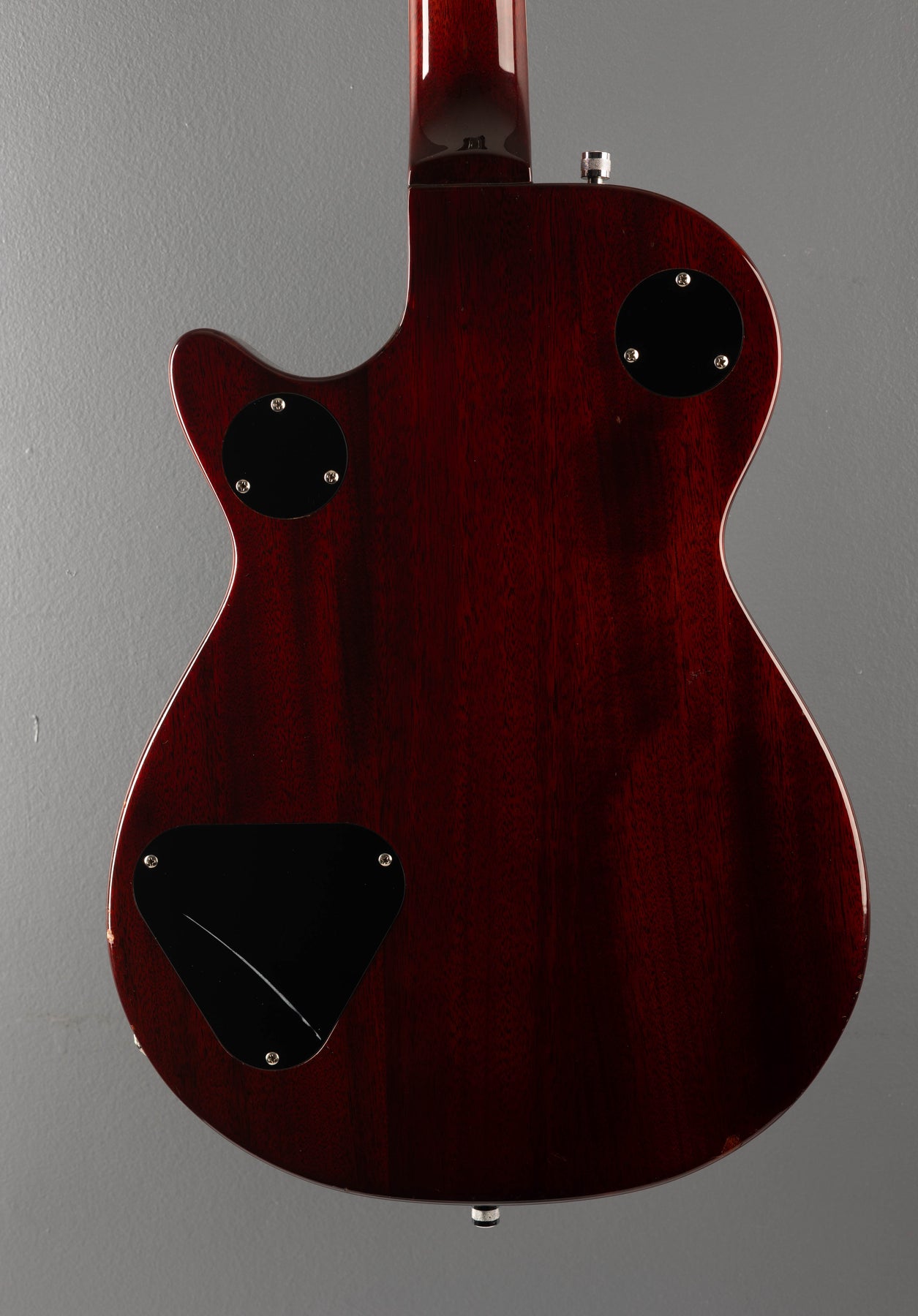 Very Good Condition, Firestick Red, Gloss urethane finish, Arched laminated Maple top on a chambered Mahogany body, Thin U shaped Mahogany neck, Bound 12" radius Laurel fingerboard with the pearloid block inlays and medium jumbo frets, 24.6" scale length, 1 11/16th" nut width, Gretsch Black Top Broad’Tron bridge and neck pickups, 3-way toggle switching with the master volume and tone controls plus a volume control for each pickup, Anchored adjusto-matic bridge and the V stop tailpiece, Cast/sealed tuners, 7.5 pounds, case not included.